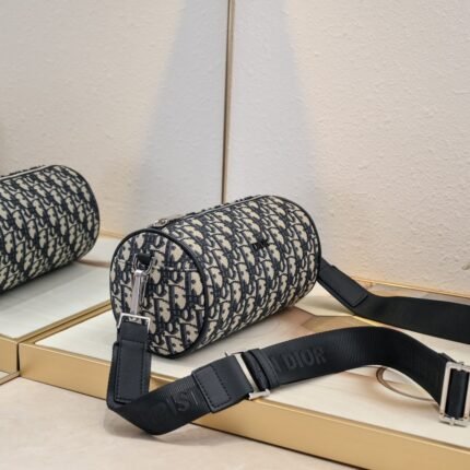 Original with tiger head 🐯 box Dior has internal code OBLIQUE printed canvas cylinder bag ♻ black cloth and black calfskin adjustable, removable shoulder strap ⚜ full of LOGO logo details, the same for men and women. Model: CD-108722 Size: 21 × 13 × 13cm❤