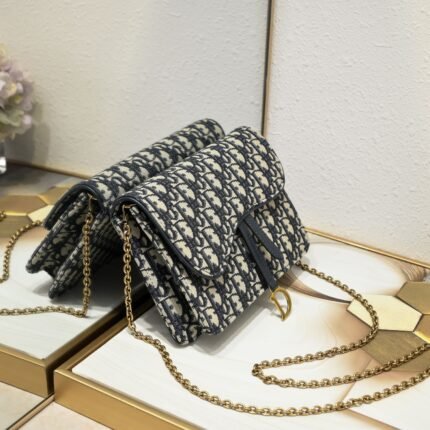 SaddleDior Oblique jacquard canvas blue calfskin Wallet on Chain large clutch. Vintage gold metal. 4 card slots! 1 flat pocket! 1 zipper pocket! 1 detachable chain strap with a length of 120 centimeters. 😍 Can be held by hand, shoulder-carried or crossbody. Size: 22 x 14.5 x 3.5 centimeters.