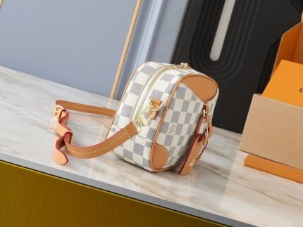 Upgrade the original M45528 old flower white grid [DEAUVILLE MINI HANDBAG]. Nicolas Ghesquière launched the Deauville mini handbag in autumn and winter 2020, showing the pocket version of the classic Deauville handbag. Monogram canvas and natural leather trim create a compact and lightweight camera bag configuration. With an adjustable leather shoulder strap, it can exude retro charm whether carried on the shoulder or slung diagonally. Size: 21 x 16 x 7 cm.