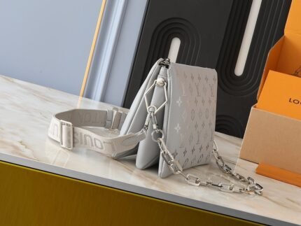 The upgraded original M20369, M22398, M21353, M21209, M57790 black, M57792 bright red, M57793 white, M57936 green, M57913 silver, M58699 light blue, M59278 gold, M57791 khaki, M59276 rose pink, M59275 dark red, M59277 caramel Coussin mini handbag shone brightly at the 2021 spring/summer fashion show. The Monogram embossed fluffy sheepskin creates a pillow configuration, injecting avant-garde style into the simple design. It can be carried crossbody with a shoulder strap or transformed into a chain baguette bag, or carried under the armpit. Size: 26 x 20 x 12 cm.