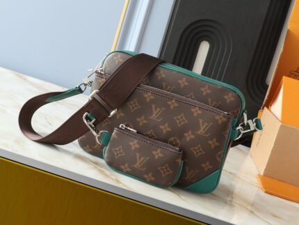 Upgrade the original M11648, M11645, M24754, M46603, M46602, M46604, M69443. This Trio messenger bag is made of Monogram embossed cowhide leather. The small coin purse on the front zipper pocket and shoulder strap is detachable. Together with the main compartment, it enriches the functional design. The detachable and adjustable jacquard fabric shoulder strap is marked with the brand logo, providing a comfortable shoulder and crossbody experience. Size: 25Ă—18.5Ă—7cm.