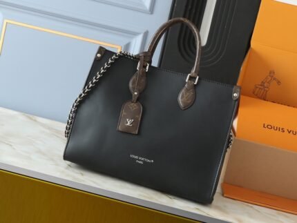 Upgrade the original M25341 M25342 M25343 (quality comparison among three, real photos). This medium-sized Low Key Cabas handbag is wrapped with soft grained cowhide leather and lined with suede leather, crafted with ingenuity to create a magnificent style. The brand's signature padlock interprets the combination of elegant aesthetics and safety performance. The adjustable handle realizes the free switching between hand-held and long or short shoulder carrying. Size: 47.0 x 30.0 x 14.0 cm.