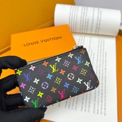 M62650 33-color key case wallet series. This key case features Monogram Ld printing in 33 vivid colors, interpreting the 2025 Murakami Takashi and Louis Vuitton collaboration's white and black 33-color series. Launched in twelve sections, it is extremely popular worldwide and loved by celebrities. It is lively, childlike and friendly. With a leather lining, it creates an elegant structure and can also hold cash and cards. Size: 12.0 x 7.0 x 1.5 cm.