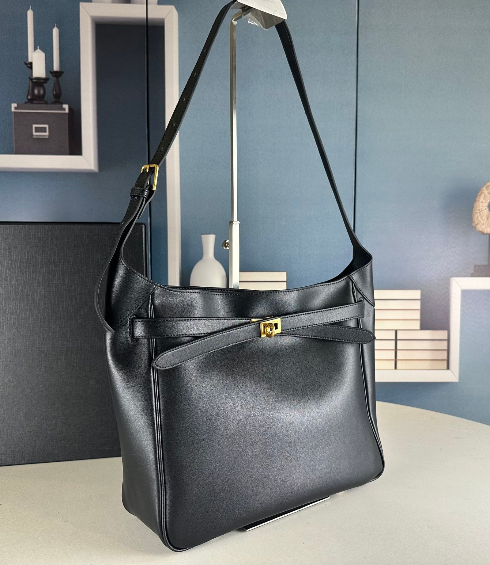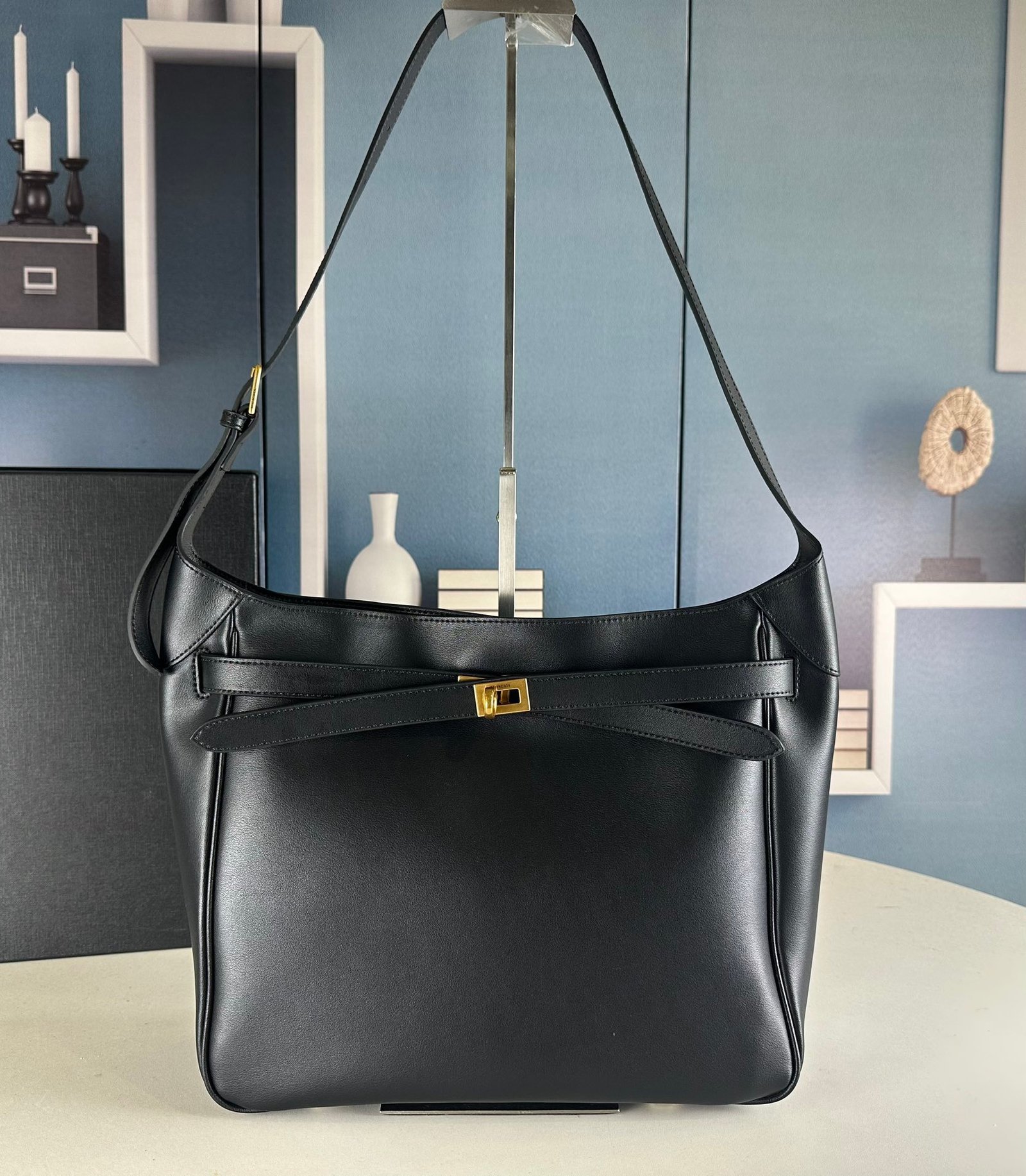 New Balenciag Winter 24 series Re-see handbag, single-shoulder bucket bag, made of top-layer cowhide. The texture is visible to the naked eye. Adopts original hardware. Minimalist, high-end, and大气. A handbag transformed from a motorcycle glove. Hanging with fashion recreated from a key ring buckle. The upper body has a lazy and御姐风 style. Size: 30x25x10.