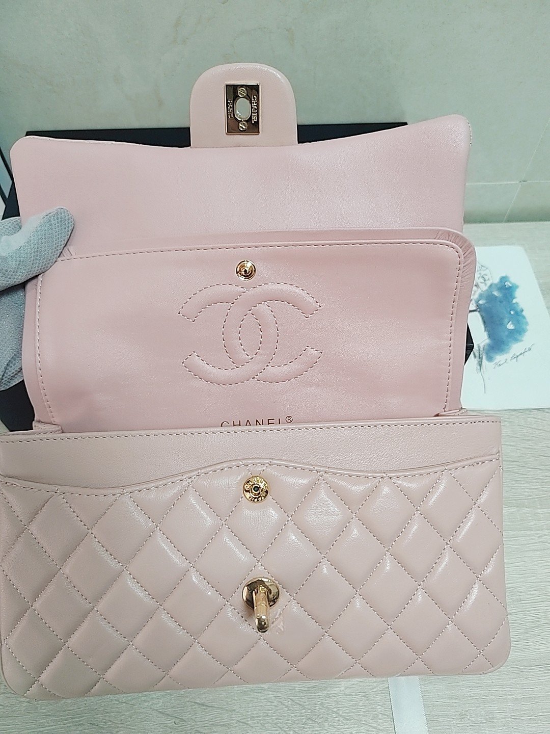 Top original 👜Chanel lambskin🐑 cf series diamond quilted bag by Chanel. #Recommended for exquisite goddesses. Beauty and practicality coexist. In recent years, it has been extremely popular. And this Chanel bag is extremely excellent. Versatile for leisure, professional, and cute new styles. The material is the original lambskin craftsmanship💼. The inner compartments are convenient for storage. Carrying it on the shoulder is casual and stylish. Carrying it by hand is not tacky and has a very queenly demeanor. Generous and neat, extremely beautiful.👍👍👍 Size: 25.5*15.5*6.5. Number: 11124 gold buckle pink.