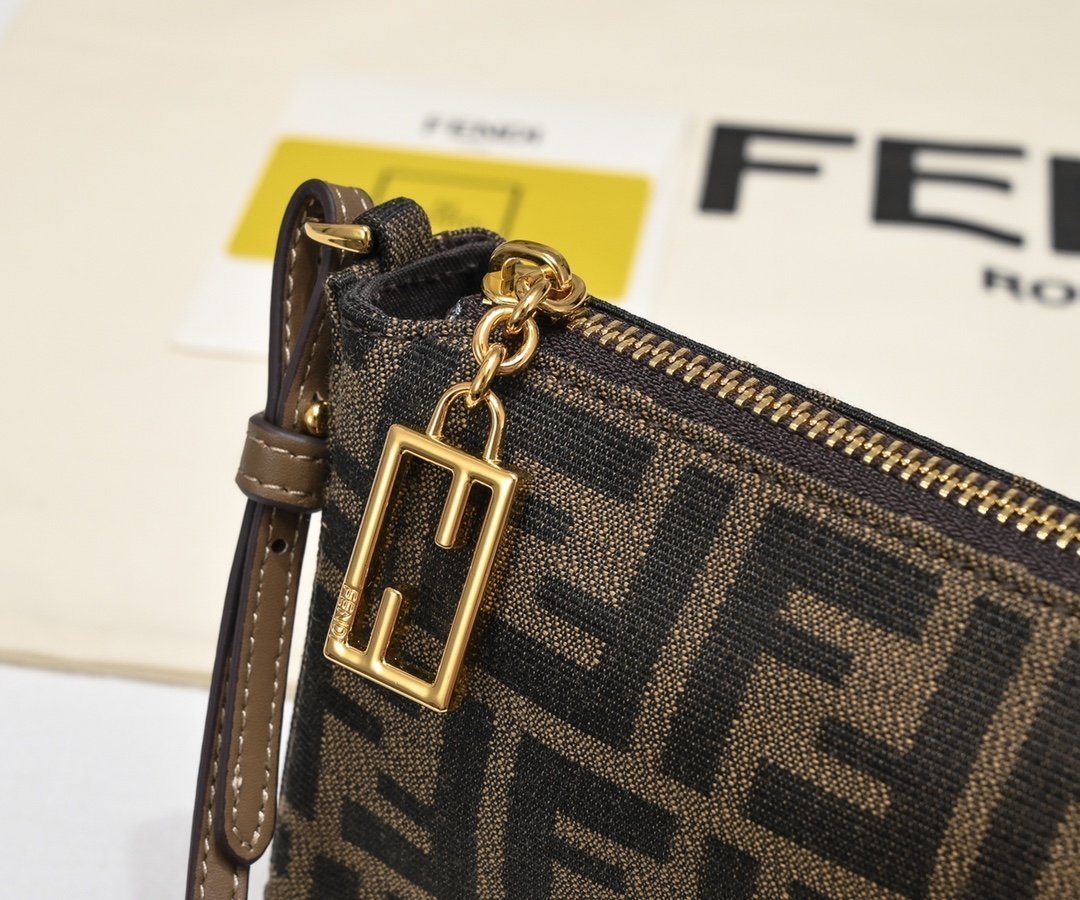 (Original single cloth with box) Model 7717 Fendi new 🆕 Baguette brown jacquard FF cloth handbag, equipped with a detachable thin chain, can be carried by hand or under the armpit. Zipper opening and closing, the zipper head decoration has the iconic FF pattern. Cloth material, with brown and tobacco yellow jacquard FF. Metal parts with gold finish! Model: Size: 20×13×3CM62318