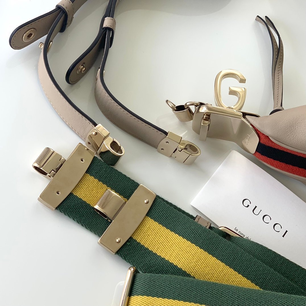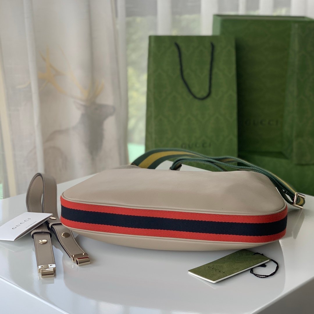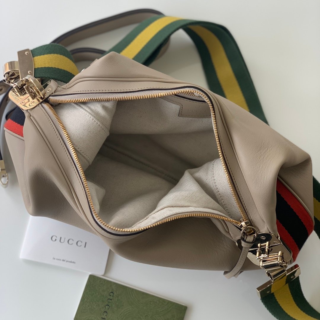 [G] 🔥🔥🔥 G home Attache series large shoulder backpack 🌺 GG with red and blue webbing piping, gold tone accessories, cotton and linen lining 🌼 with leather shoulder strap and removable webbing shoulder strap, G hook buckle 🌹 color: oat