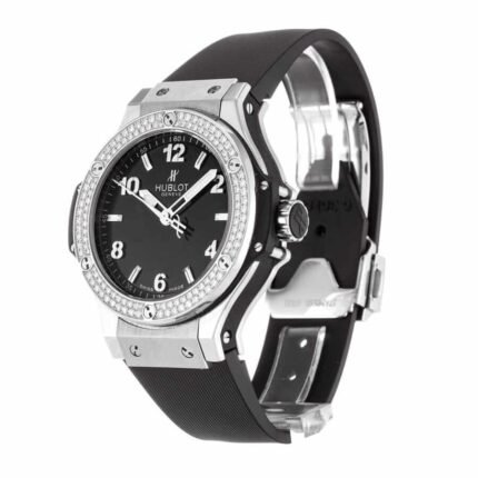 The Hublot Big Bang Sang Bleu 415.NX.1112.VR.MXM16 Replica is a luxury watch. It features a 904L stainless steel case and bezel. with a diamond-studded bezel. The case is 45.00 mm in size and 14.00 mm thick. The black leather bracelet is adjustable and features a 904L stainless steel fold clasp. The black dial features stick and dot indices. and 904L stainless steel stick hands.