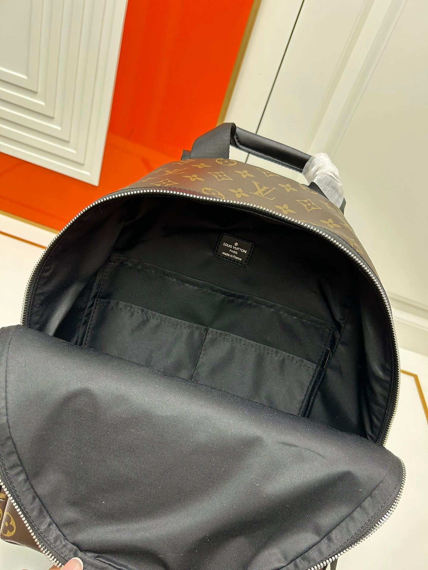 This Discovery backpack is made of soft Monogram Eclipse coated canvas fabric and complemented by the steady atmosphere of metal parts. The outer pocket is convenient for taking and putting accompanying items, and the inner pocket realizes orderly storage. Detailed characteristics: 29 x 38 x 20 cm.
