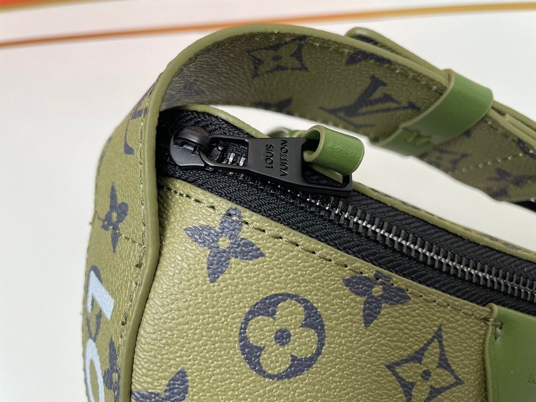 M23835 black embossed, M23838 This LV Moon Crossbody handbag is made of Monogram Eclipse coated canvas with leather trim and shoulder straps. The refined and elegant atmosphere is self-evident. Blue flower flame rose silk-screened semicircle bag, moon bag, pea bag oo [handshake] [handshake] The half-moon shape is convenient for cross-body carrying on the front and back, and can easily store mobile phones, small wallets and headphones. Size: 24.5 x 16 x 4.5 cm (length x height x width).
