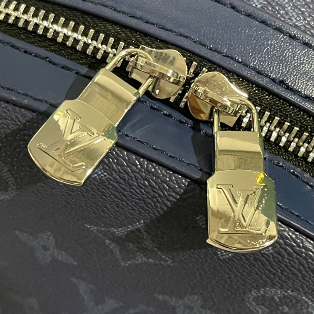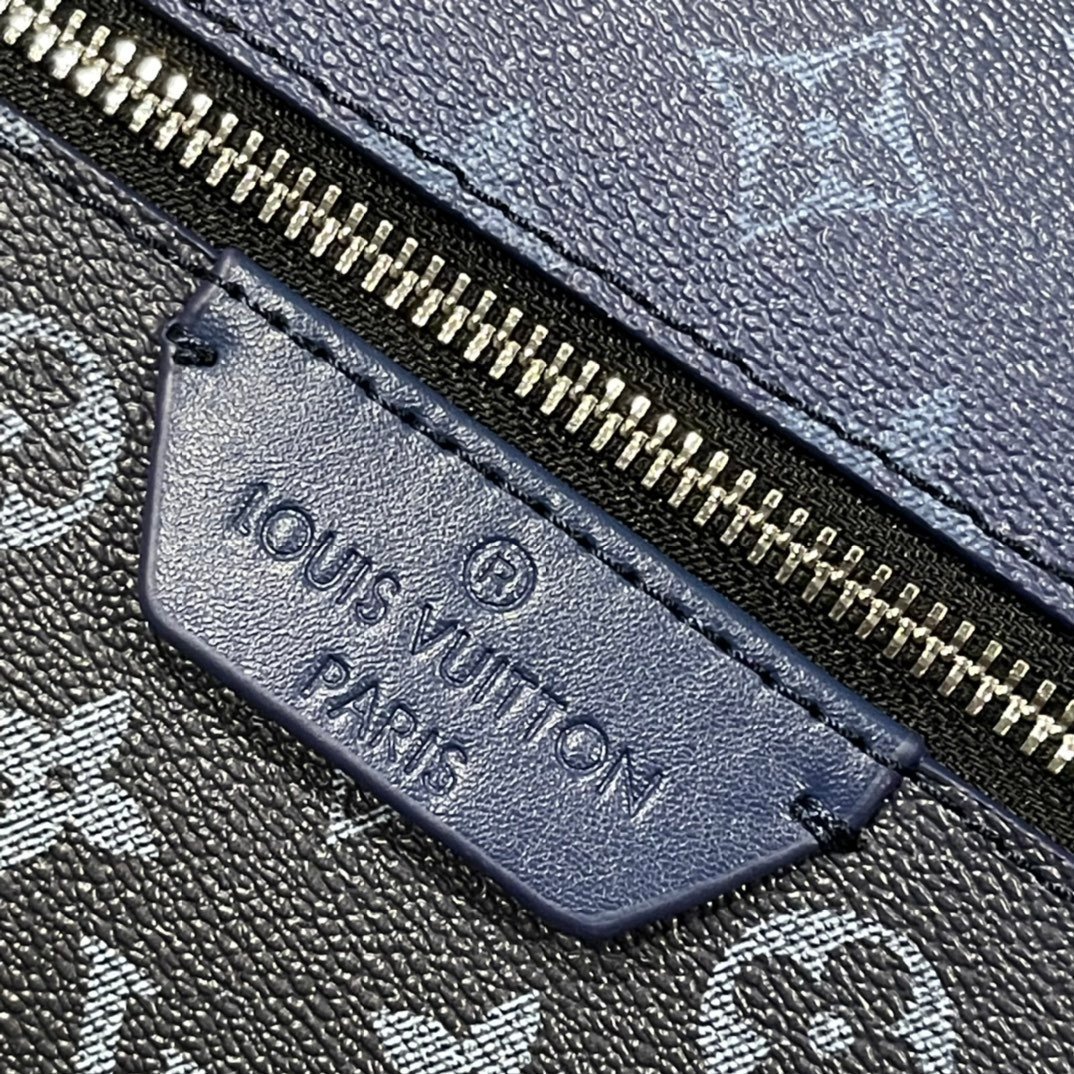 Gradual change blue, the latest Discovery small backpack features deep Monogram Eclipse Reverse coated canvas to create a chic look with the gradual disappearance of Quanfu Monogram patterns, and then imbue the leather label, zipper edge and top handle with bright tones. Zippered front pockets and open side pockets perfect the details for daily carry.