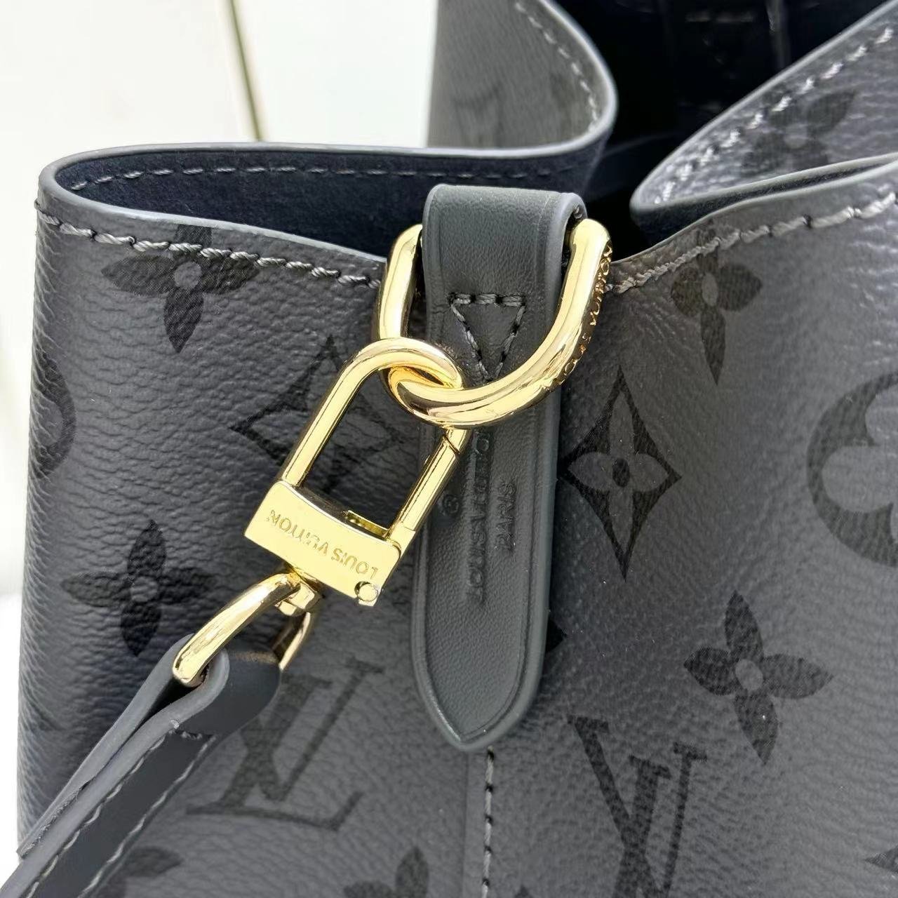 Model: 12749 bucket bag series NÉONOÉ BB handbag. The Neoono on BB made of Monogram canvas material decorated with natural leather. The iconic Neono of the house reinterprets the bucket bag into a small-sized design. It has ample storage space for carrying necessities such as keys, AirPods and iPhones. A leather cord that can safely store carried items. With a detachable handle and a detachable and adjustable strap, it is an item that can be styled in various ways. 20 x 20 x 13 cm.