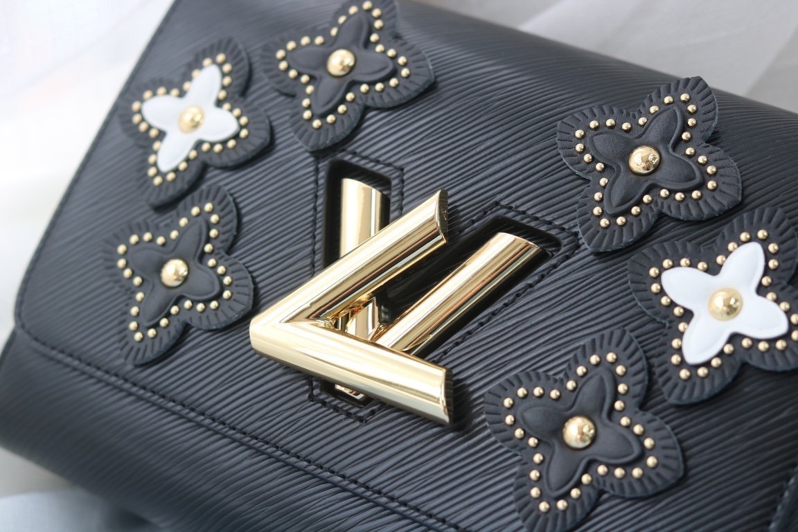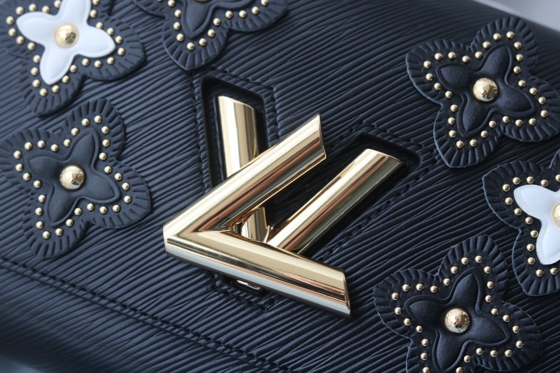 The Flower Tinsel theme in Louis Vuitton’s haute couture series is for the Twist medium handbag, adorned with a unique pattern: multiple layers of leather and studs reinterpret the Monogram flower. The rivets of the brand’s classic luggage are transformed into elegant decorations, complementing the exquisite black Epi leather body. The shape is small, and the unique curved base increases the capacity of the handbag. The adjustable chain is suitable for cross-body or elegant shoulder carrying. Medium size: 23*18*8cm.