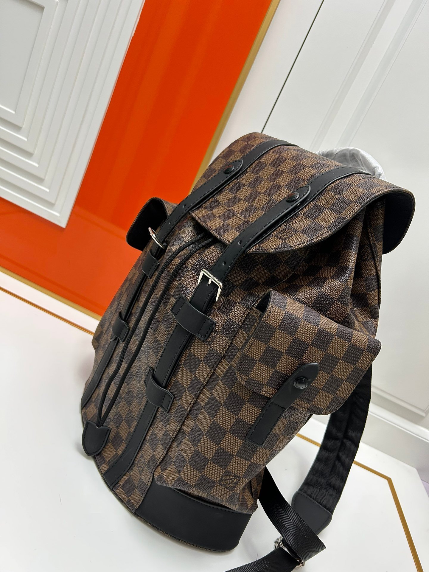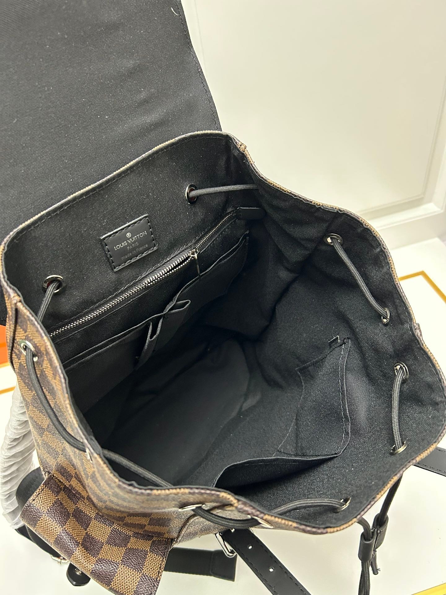 With black leather trim, reinterpret the spirit of the hiking backpack. Gray and black tones are matched with silver snaps and zippers. Equipped with multiple pockets and a leather flap with snaps to ensure the safety of items inside the bag. Detailed features: 41.0 x 48.0 x 13.0 cm.