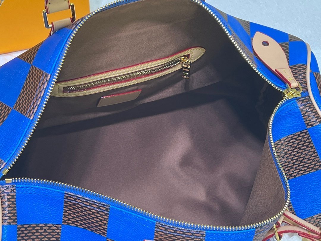 This Speedy P9 Bandoulière 40 Monogram Leather handbag is lined with soft-grained cow leather and sheepskin. It presents the blurry look of canvas printing with a silk screen Monogram pattern, expressing the new season of creative director Pharrell Williams. Size: 40x26x23cm