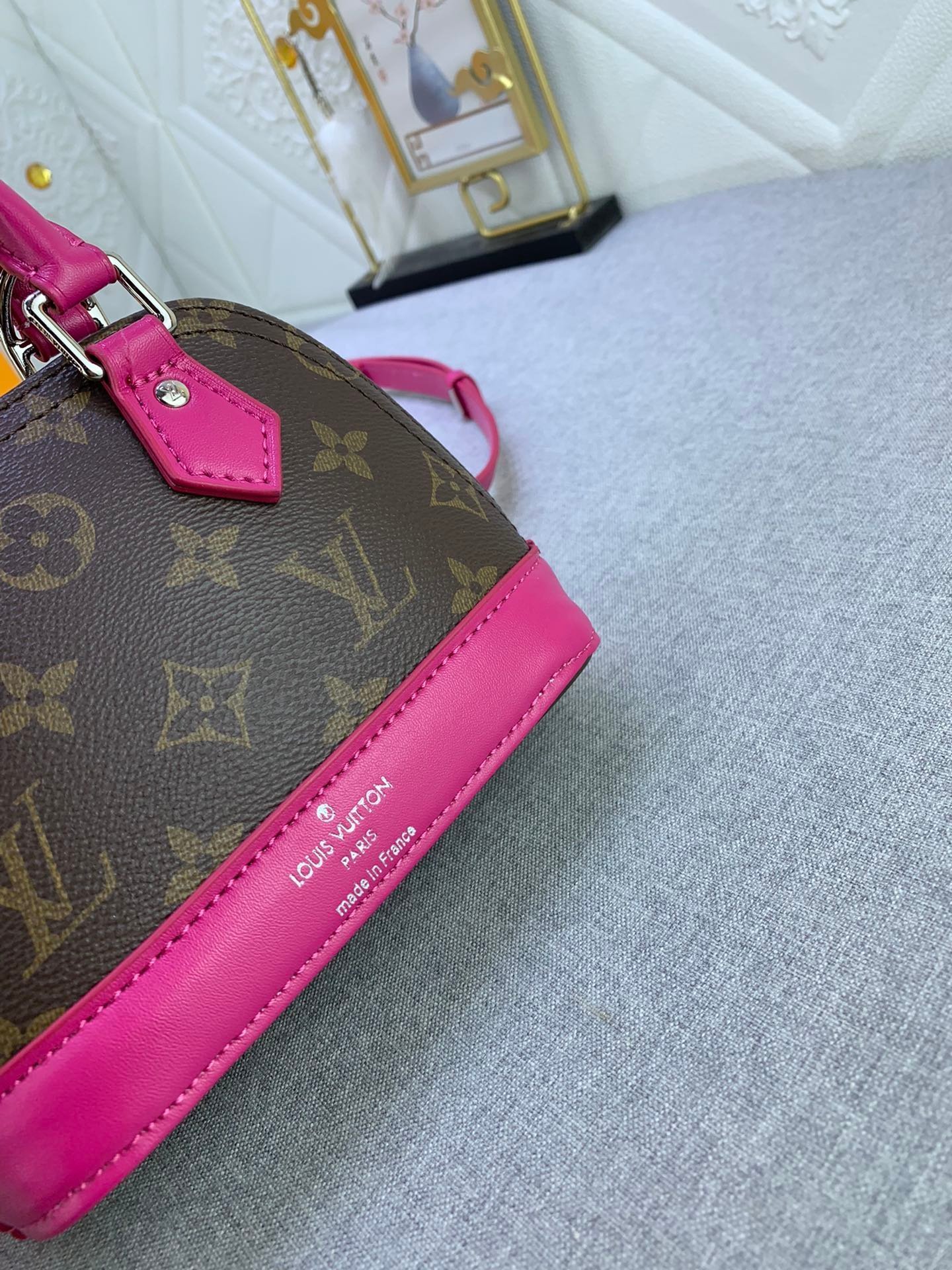 Mini shell bag series. New launch Nano Alma handbag. The Nano Alma reproduces the symbolic Alma bag in a miniature version. Louis Vuitton’s signature Monogram canvas material coordinated with decorations of natural leather. A delicately crafted item that combines traditional charm and modern functionality. When the double zipper is opened, the interior design with surprisingly ample storage space is revealed. With two leather handles and an adjustable and detachable shoulder strap, multiple styles can be created.