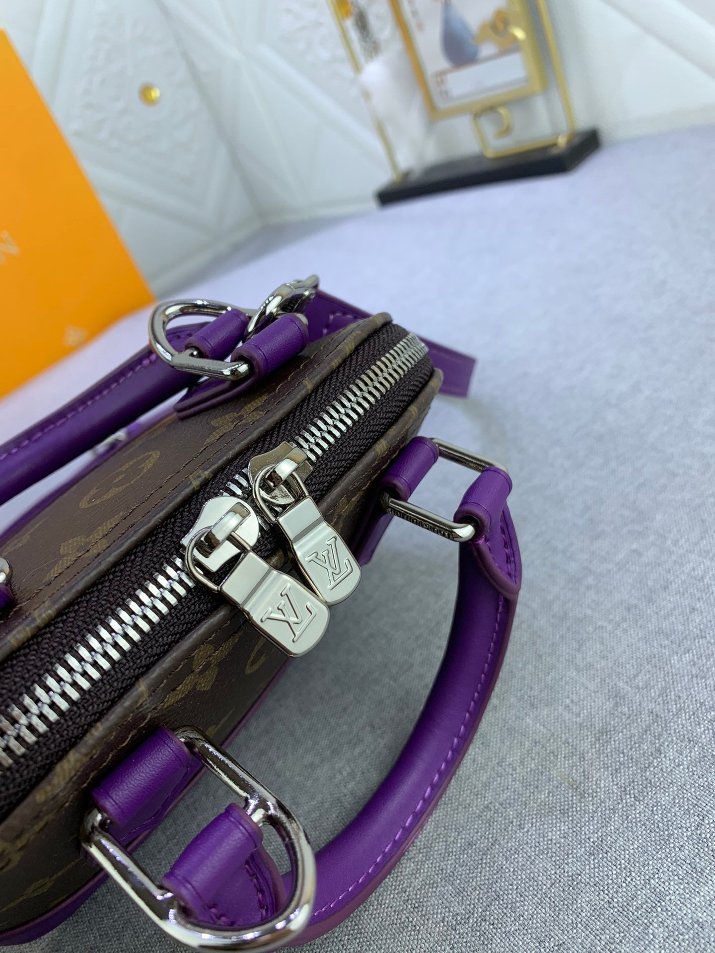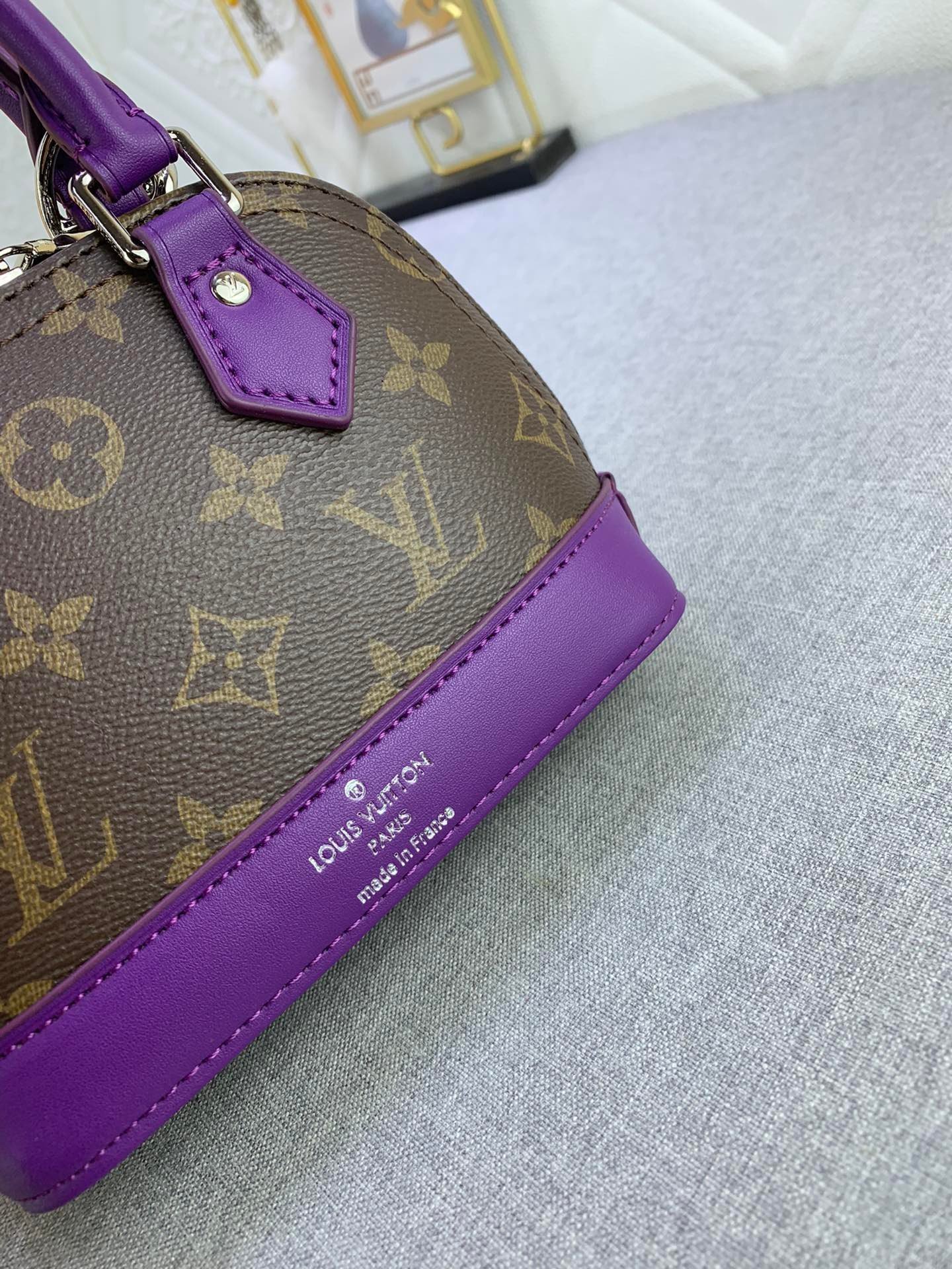 Mini shell bag series. New launch Nano Alma handbag. The Nano Alma reproduces the symbolic Alma bag in a miniature version. Louis Vuitton’s signature Monogram canvas material coordinated with decorations of natural leather. A delicately crafted item that combines traditional charm and modern functionality. When the double zipper is opened, the interior design with surprisingly ample storage space is revealed. With two leather handles and an adjustable and detachable shoulder strap, multiple styles can be created.