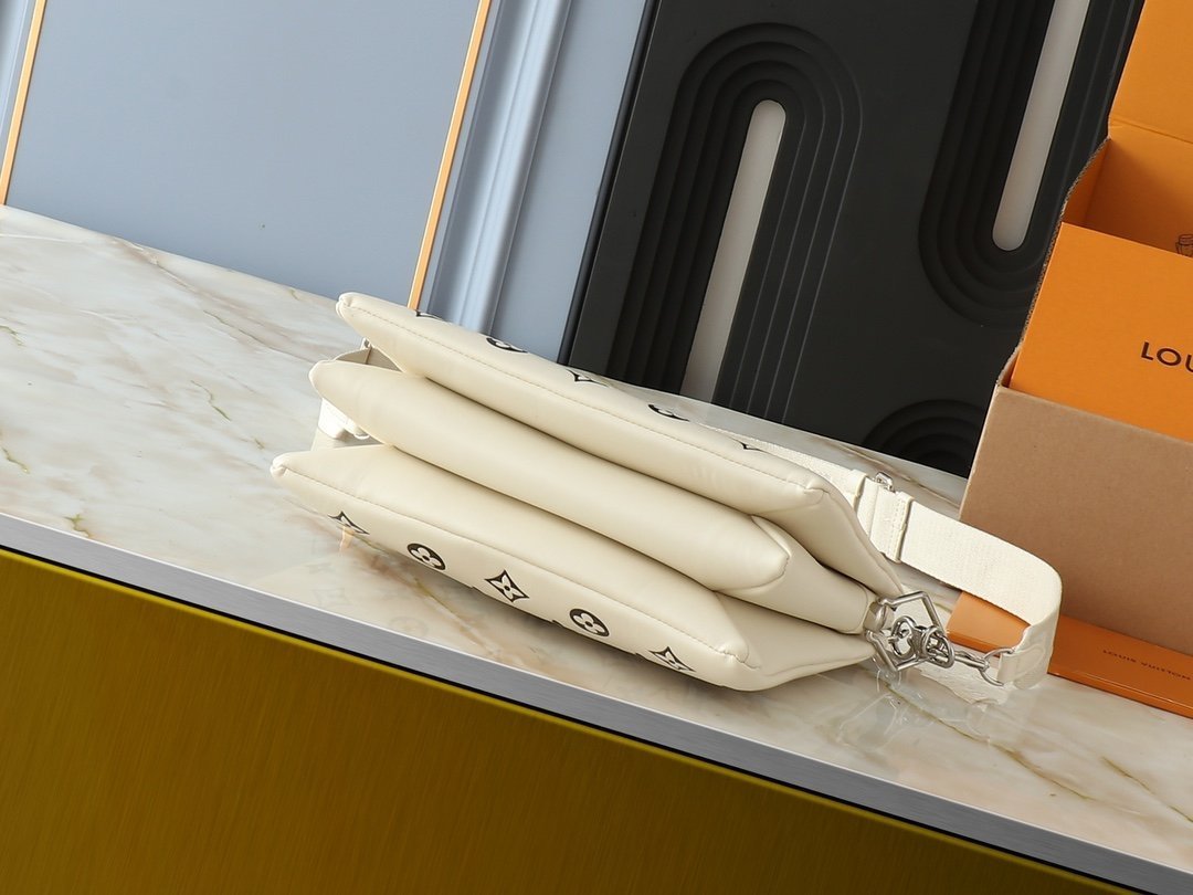 The upgraded original M20369, M22398, M21353, M21209, M57790 black, M57792 bright red, M57793 white, M57936 green, M57913 silver, M58699 light blue, M59278 gold, M57791 khaki, M59276 rose pink, M59275 dark red, M59277 caramel Coussin mini handbag shone brightly at the 2021 spring/summer fashion show. The Monogram embossed fluffy sheepskin creates a pillow configuration, injecting avant-garde style into the simple design. It can be carried crossbody with a shoulder strap or transformed into a chain baguette bag, or carried under the armpit. Size: 26 x 20 x 12 cm.