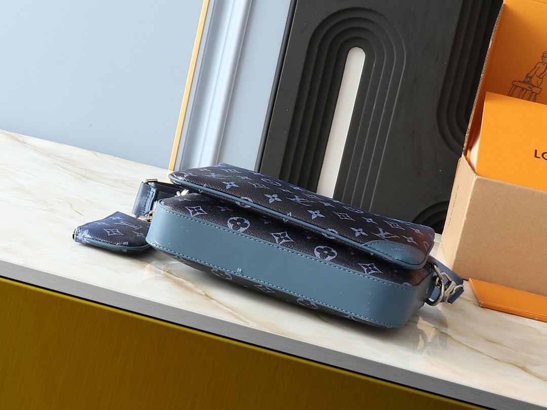 Upgrade the original M11648, M11645, M24754, M46603, M46602, M46604, M69443. This Trio messenger bag is made of Monogram embossed cowhide leather. The small coin purse on the front zipper pocket and shoulder strap is detachable. Together with the main compartment, it enriches the functional design. The detachable and adjustable jacquard fabric shoulder strap is marked with the brand logo, providing a comfortable shoulder and crossbody experience. Size: 25×18.5×7cm.