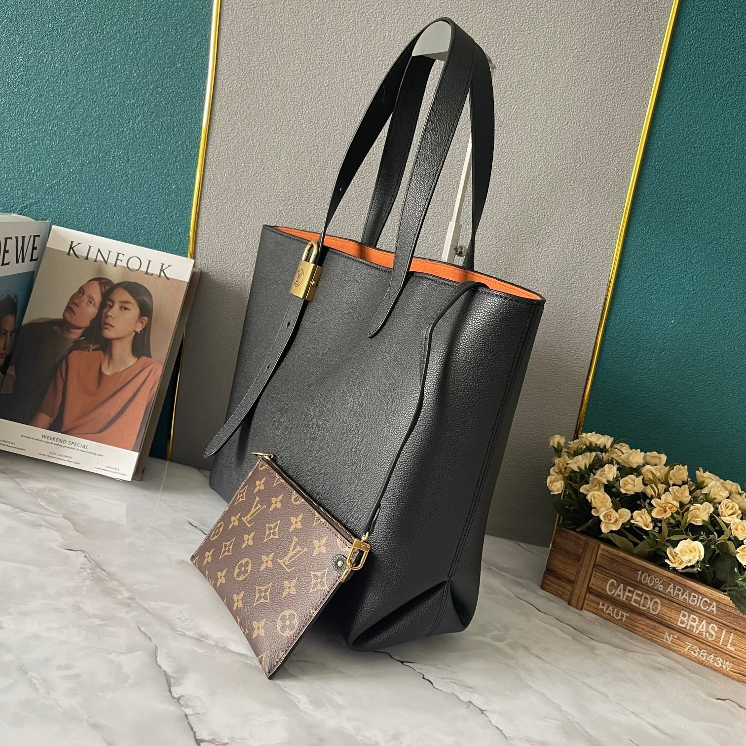 Upgrade the original M25341 M25342 M25343 (quality comparison among three, real photos). This medium-sized Low Key Cabas handbag is wrapped with soft grained cowhide leather and lined with suede leather, crafted with ingenuity to create a magnificent style. The brand’s signature padlock interprets the combination of elegant aesthetics and safety performance. The adjustable handle realizes the free switching between hand-held and long or short shoulder carrying. Size: 47.0 x 30.0 x 14.0 cm.