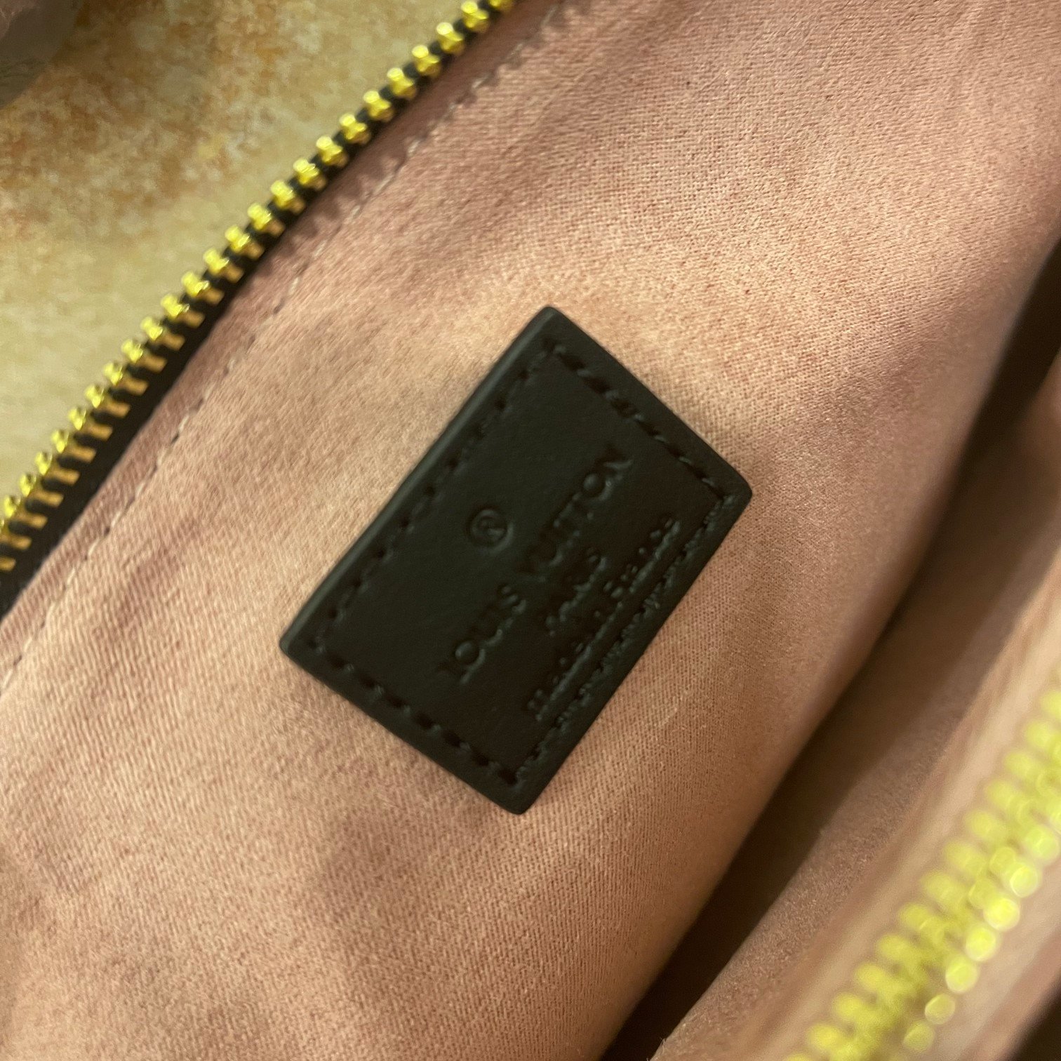 The top-of-the-line original M57793 57790 apricot Coussin small handbag shines at the Spring/Summer 2021 fashion show. Monogram embossed fluffy sheepskin creates a pillow configuration that injects avant-garde style into the minimalist design. Can be carried under the arm with a strap crossbody or an avatar chain baguette bag. Dimensions: 26 x 20 x 12 cm