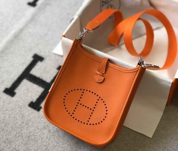 Hermes Evelyne Bag Hermes Mini Crossbody Bag 20405 Silver Buckle Orange on sale now. just need $398.00 and includes free worldwide shipping.