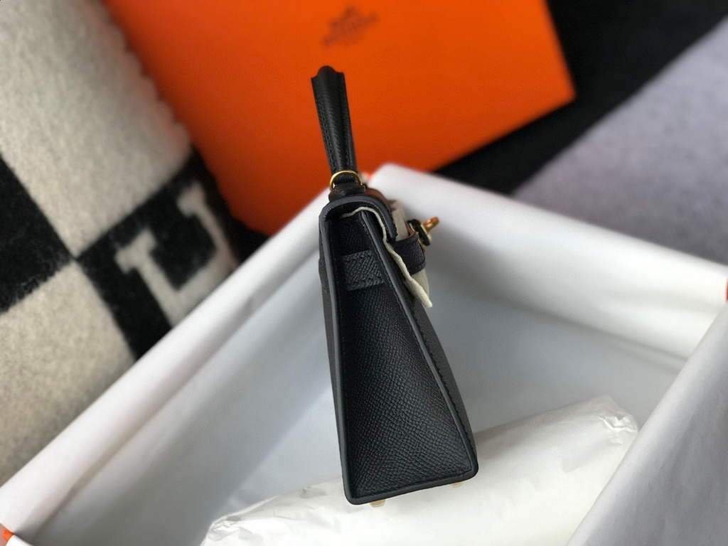 Replica Hermes Kelly Bag Hermes 19CM Epsom Shoulder Mini Bag Black Gold buckle 20455 on sale now.