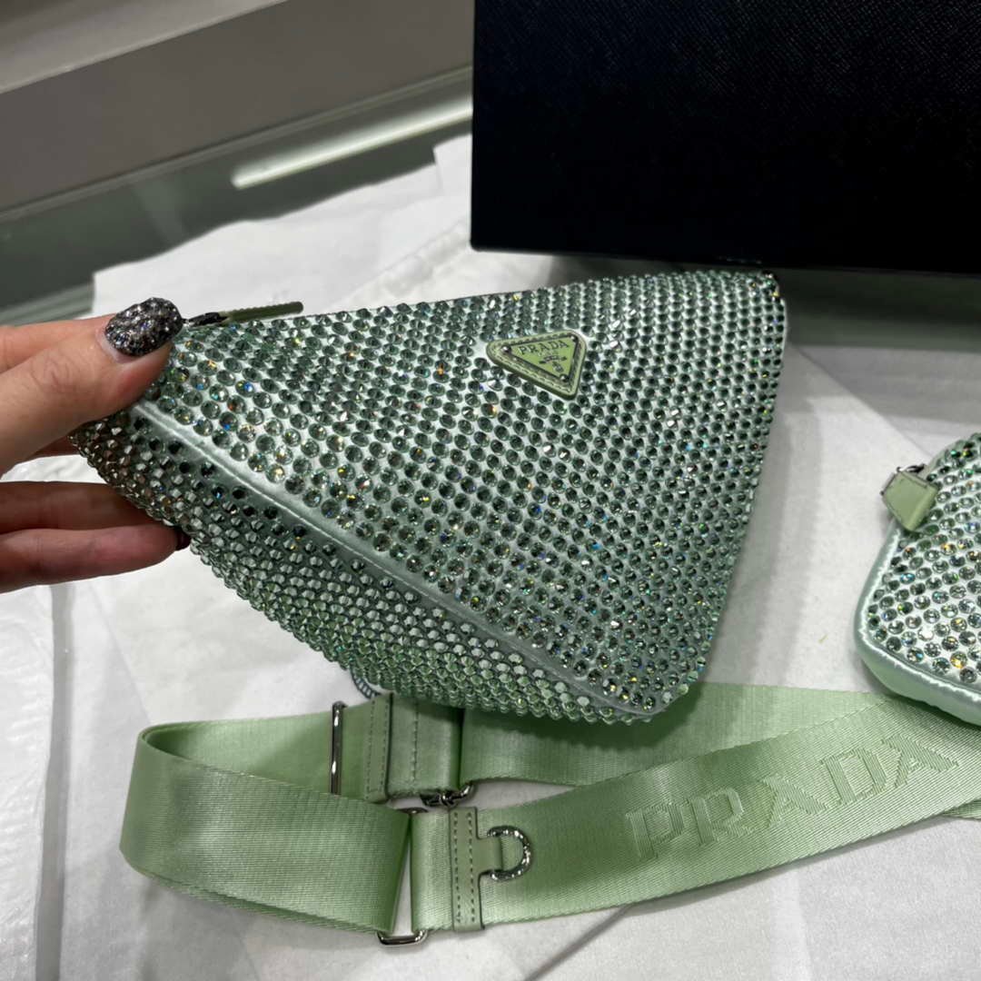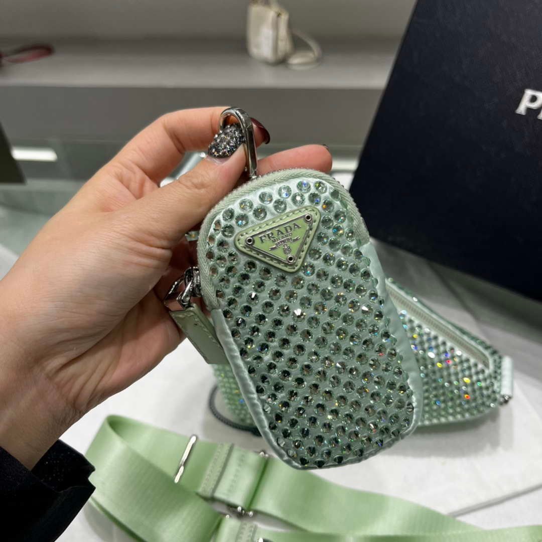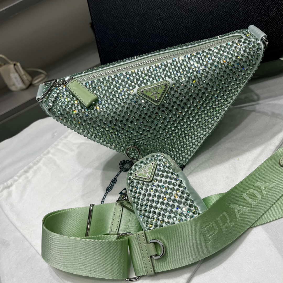 Replica Prada 1NE190 Crystal-studded satin pouch Green