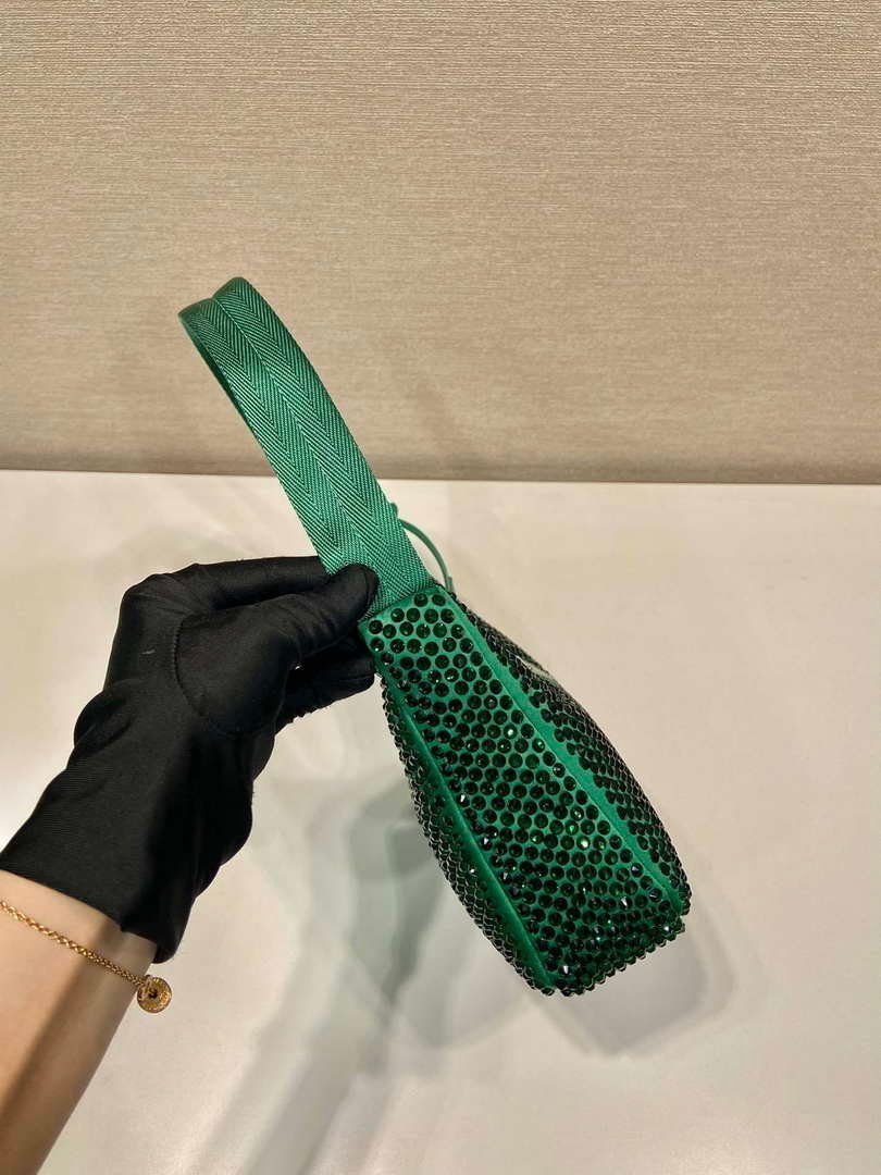 Replica Prada 1NE515 Satin mini-bag with artificial crystals Jade green