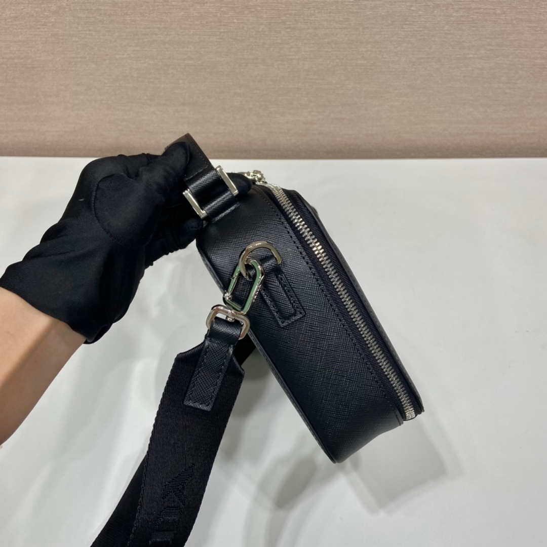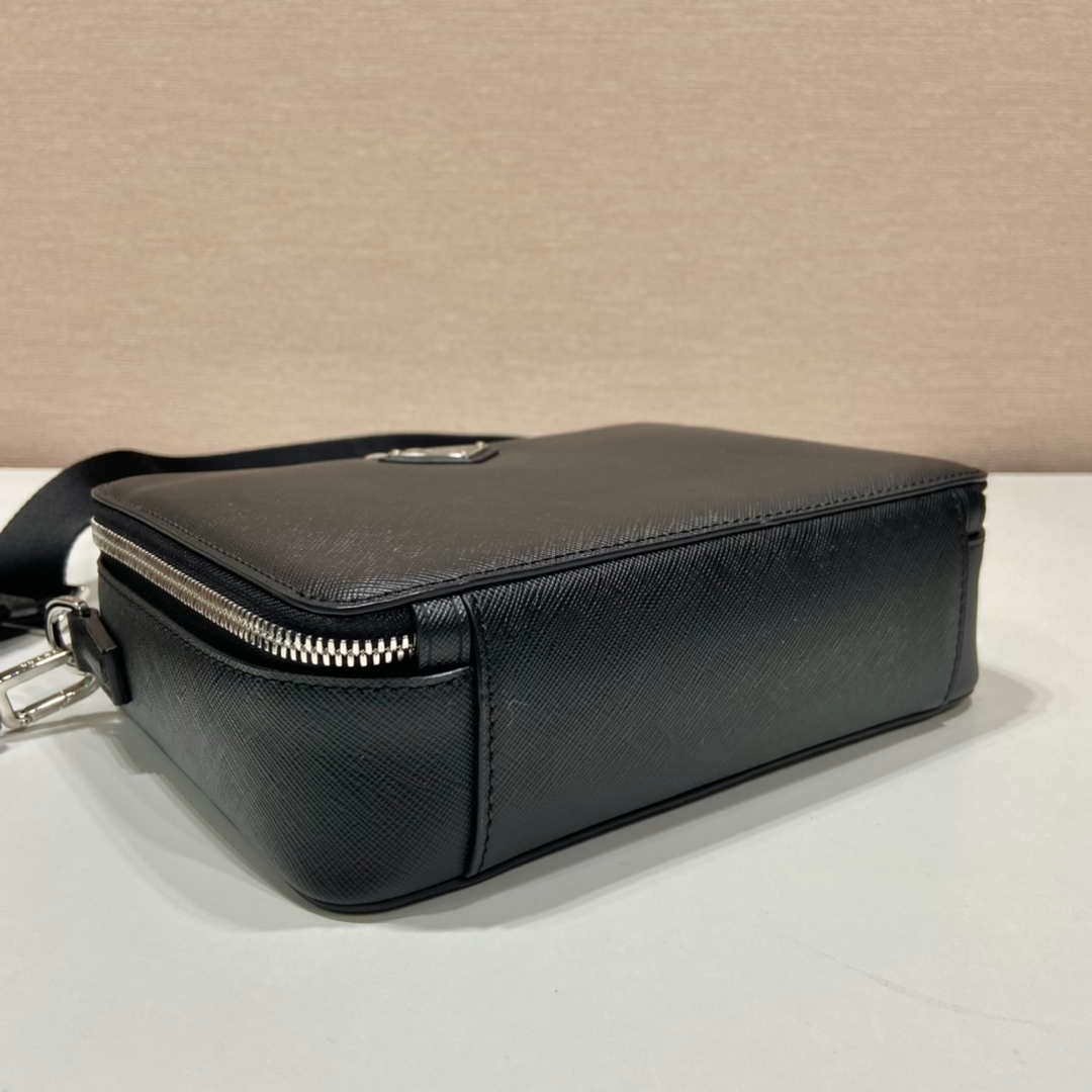 The Prada Brique bag in Saffiano leather stands out for its sleek lines. Saffiano leather. an iconic Prada material. is synonymous with luxury and identifies with traditional Italian leather goods production. The elegant shoulder bag has a handle. leather shoulder strap and two zipper pockets.