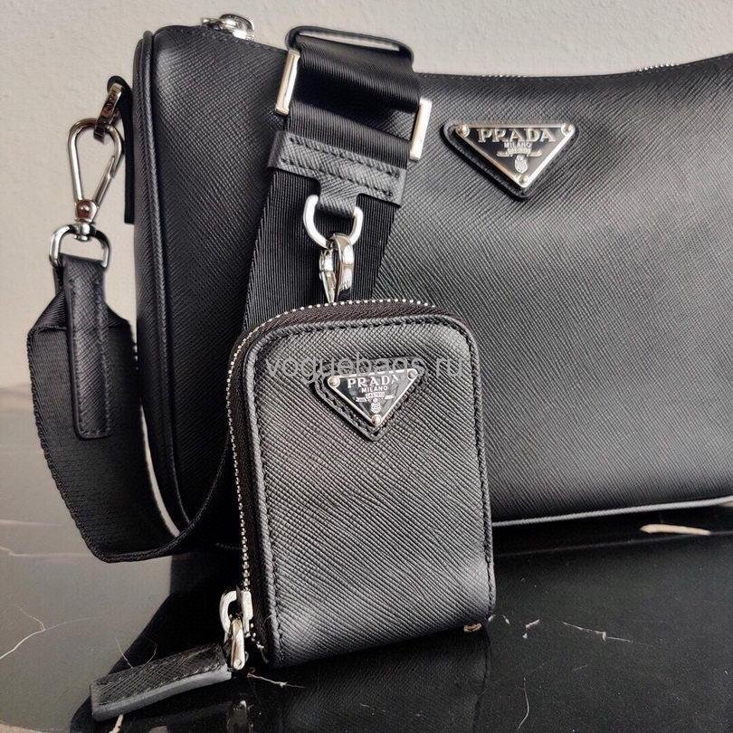 Prada 2VH113 Saffiano Leather Shoulder Bag in Black