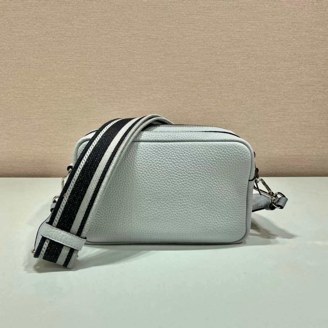 Replica Prada Leather bag with shoulder strap 1BH082 White