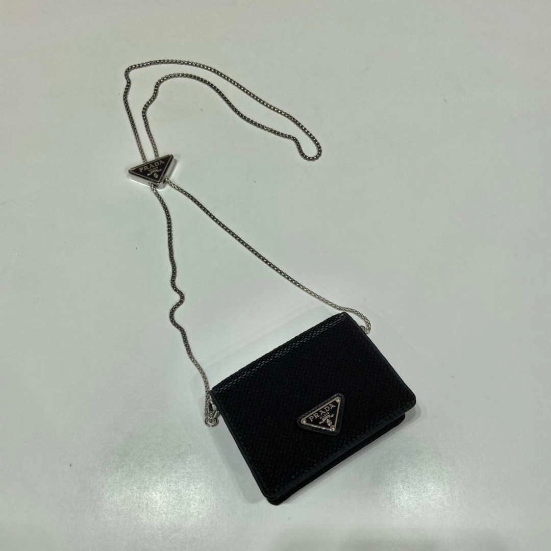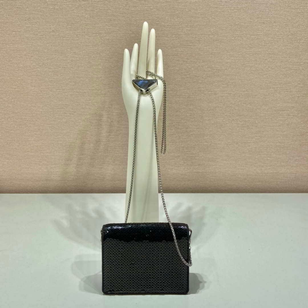 Replica Prada sequins-studded card holder with shoulder strap 1MR024 Black