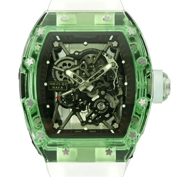 In conclusion. the Richard Mille RM 35-01 Green is a true statement piece. combining advanced materials. high-performance engineering. and a striking colorway. Its lightweight construction. superior shock resistance. and bold design make it a standout choice for watch enthusiasts who demand the best in performance and exclusivity.