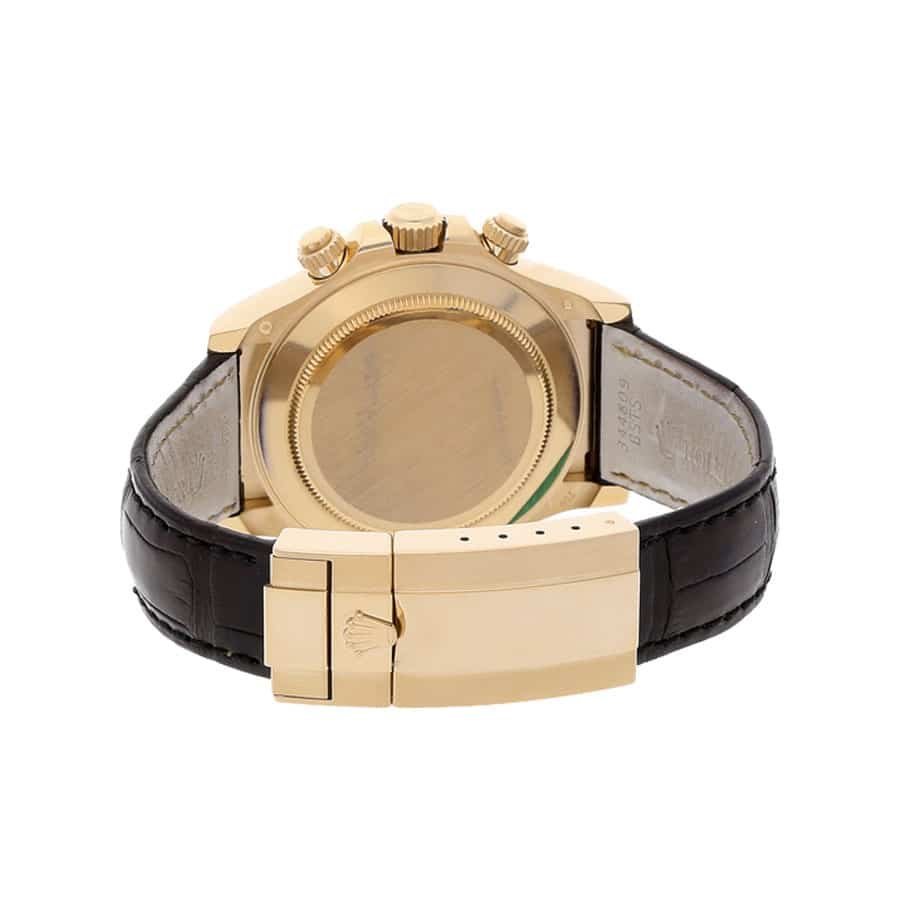 This Rolex Daytona Cosmograph 116515LNBR Rose Gold Black Dial Replica is a stunning watch. It features a 904L stainless steel case with a rose gold color and a black bezel. The sapphire crystal is 40.00 mm in size and 13.00 mm in thickness. The crocodile skin bracelet is adjustable and features a double-fold clasp in rose gold. The brown dial has Arabic numerals and 904L stainless steel hour markers and hands.