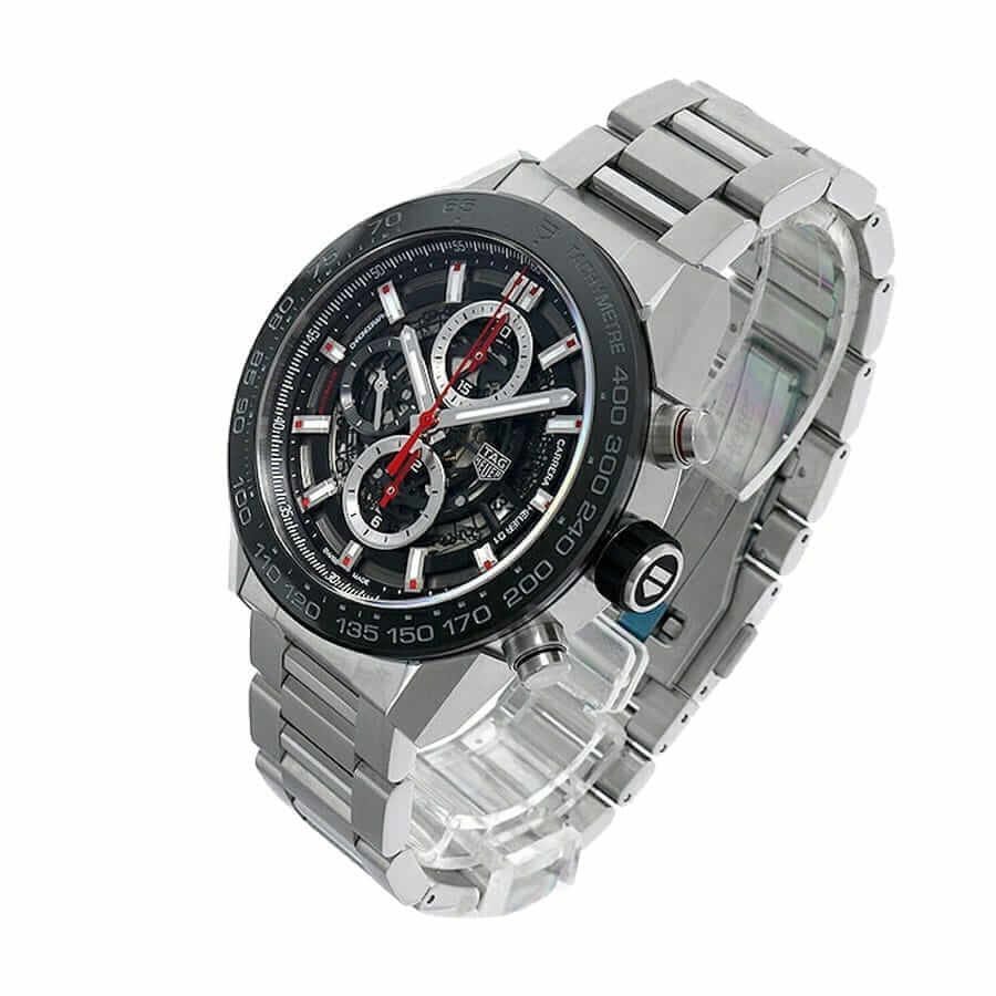 The TAG Heuer Carrera Calibre Heuer 01 Automatic Chronograph CAR2A1W.BA0703 Replica is a striking watch. It features a 904L stainless steel case and bezel. with a black bezel color and a sapphire crystal. The movement is an automatic Calibre Heuer 01 with a 60-hour power reserve and a precision of -3/+3 seconds per day within COSC certification limits. The dial is skeleton with stick indices and stick hands. both made of 904L stainless steel.