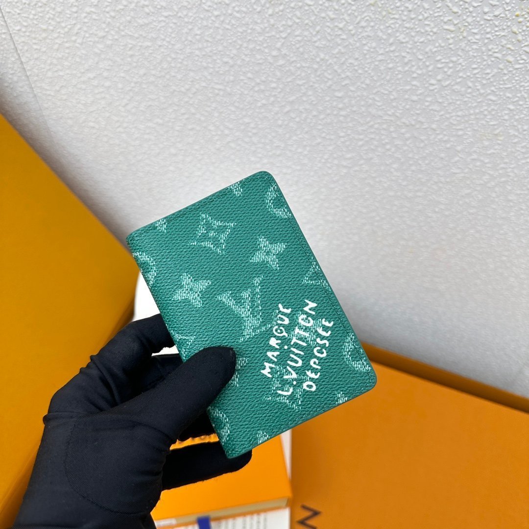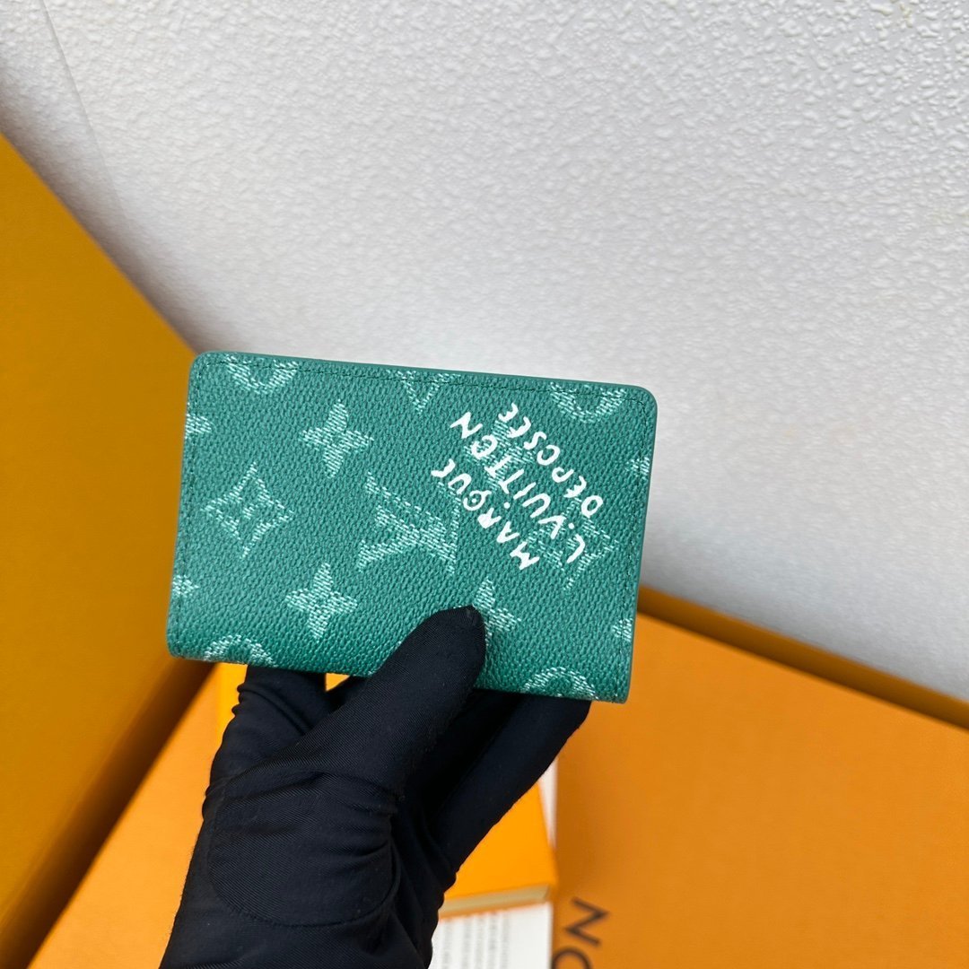 M12659 pocket wallet. This pocket wallet is made of Monogram Heritage coated canvas. It incorporates classic elements such as the vertical and horizontal textures of Damier check and the Marque L.Vuitton Déposée logo, showing Pharrell Williams’ modern interpretation of the Monogram pattern. 11.x 7.5.