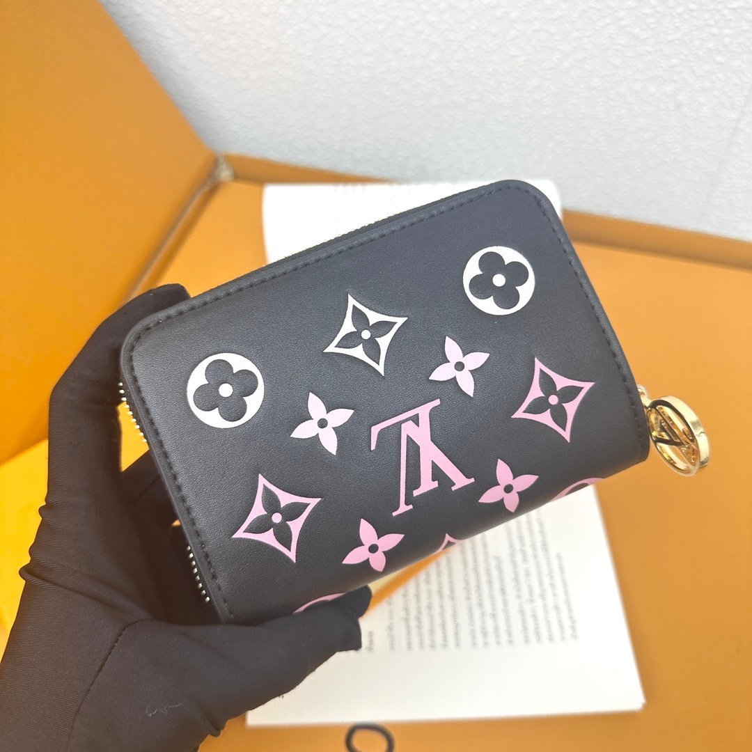 M12378 This wallet is part of the LV Garden collection, inspired by the floral theme of the Louis Vuitton Fall/Winter 2022 fashion show. Sewn in soft lambskin with a floral version of the Monogram embossed pattern, the elegant design is matched with a gold zipper with the LV Circle logo zipper. The inner layer of the all-in-one wallet features a number of practical features, including three large compartments, a change compartment and six business card mezzanines.