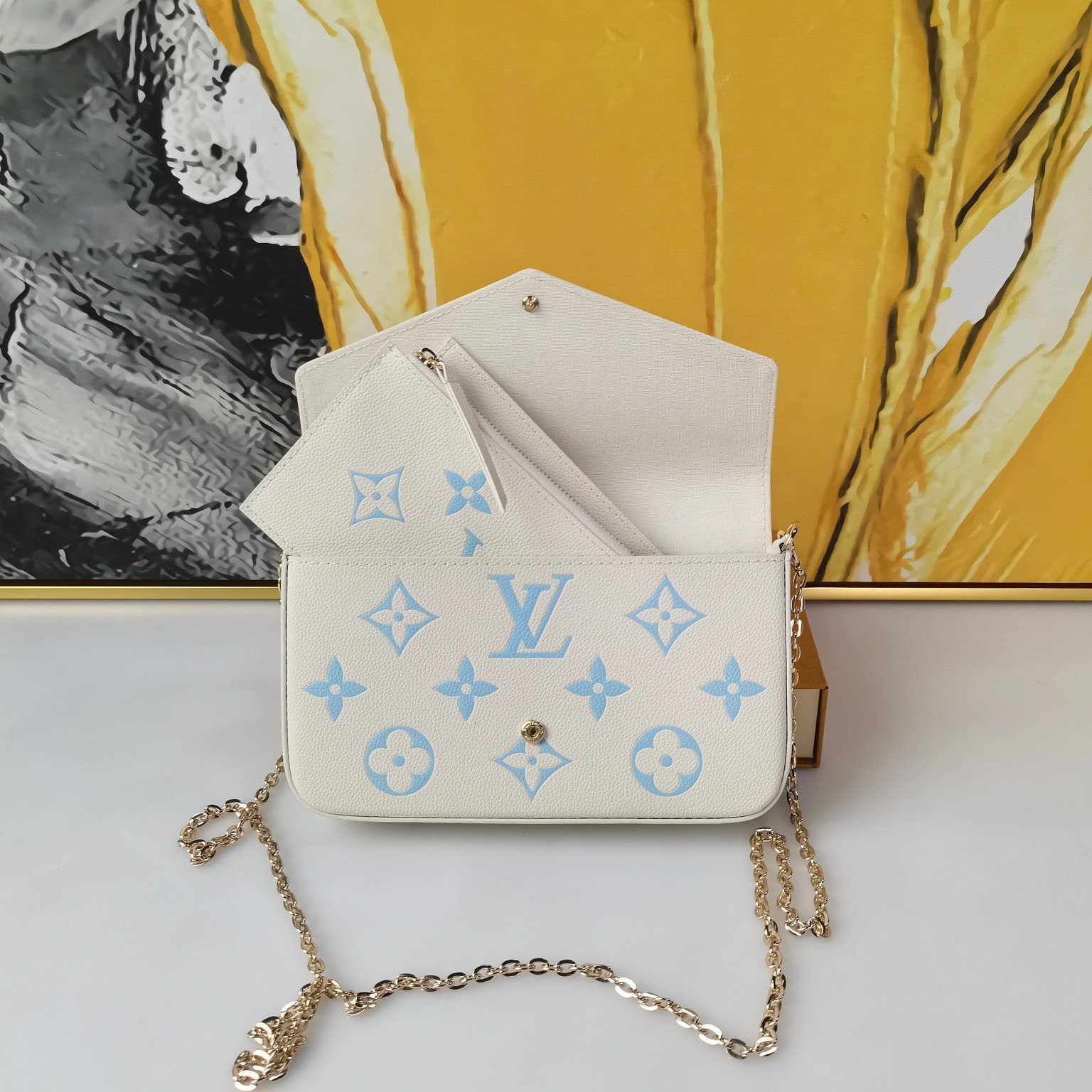 M83025 This season’s Pochette Félicie is reinterpreted in soft Monogram Empreinte leather. The soft two-tone color scheme highlights the embossed letter pattern. A stylish and versatile pouch comes with two removable pockets and a gold chain. You can use it as a shoulder bag or as a clutch after removing the chain. Size: 21*12*3cm.