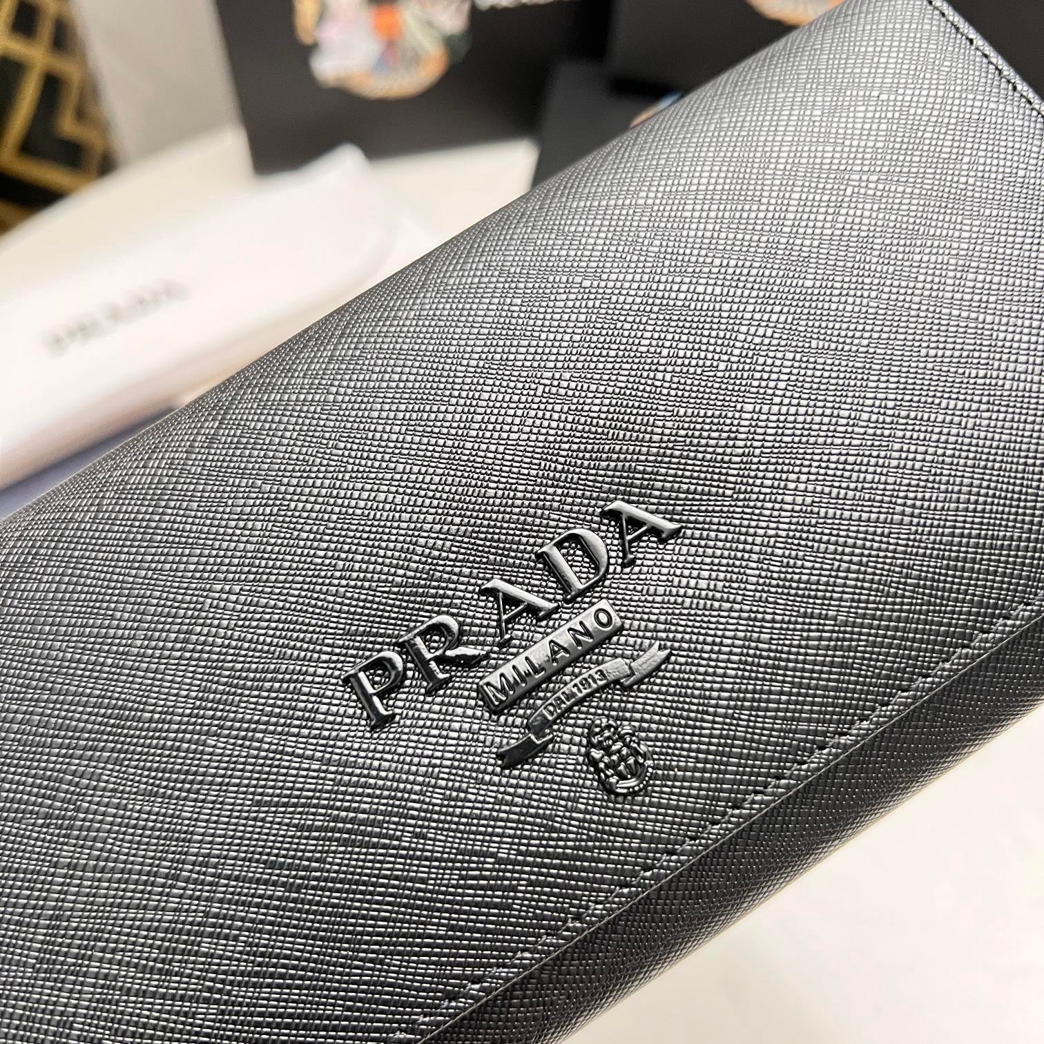 PRADA.👏👏 Classic flap wallet with two compartments.💼 A classic piece, simple and fashionable. Made of top Italian original cross-grained cowhide with excellent texture. Imported threaded lining. White steel metal hardware accessories! Exquisite stitching is evenly and neatly done. Exquisite workmanship. Size: 19x10x2.5. Colors: multicolored scattered labels including plum red, bright red, blue, black, and pink. Number: ML202.