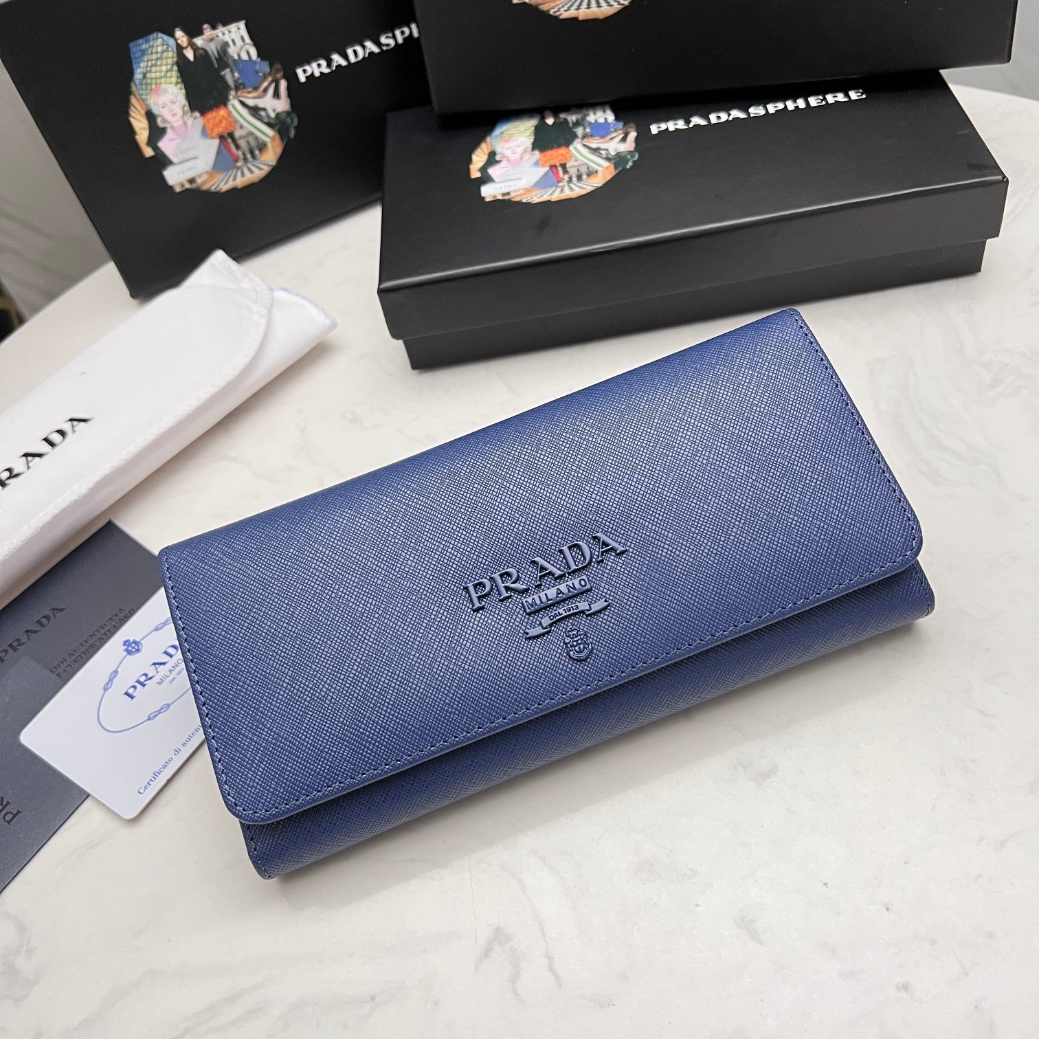 PRADA.👏👏 Classic flap wallet with two compartments.💼 A classic piece, simple and fashionable. Made of top Italian original cross-grained cowhide with excellent texture. Imported threaded lining. White steel metal hardware accessories! Exquisite stitching is evenly and neatly done. Exquisite workmanship. Size: 19x10x2.5. Colors: multicolored scattered labels including plum red, bright red, blue, black, and pink. Number: ML202.