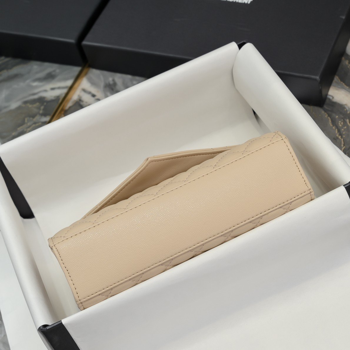 Small size. Envelope#Apricot gold buckle_. Small grained embossed quilted genuine leather envelope bag. Classics are eternal. The V-pattern combined with rhombus pattern and caviar texture is extremely beautiful. It is very wear-resistant. Italian cowhide with a conspicuous Y family logo is both atmospheric and fashionable. It is very versatile. The small size has a large capacity. Looking at its side, you can know that it can hold a lot. Model: 52620. Size: 21x13x6cm.