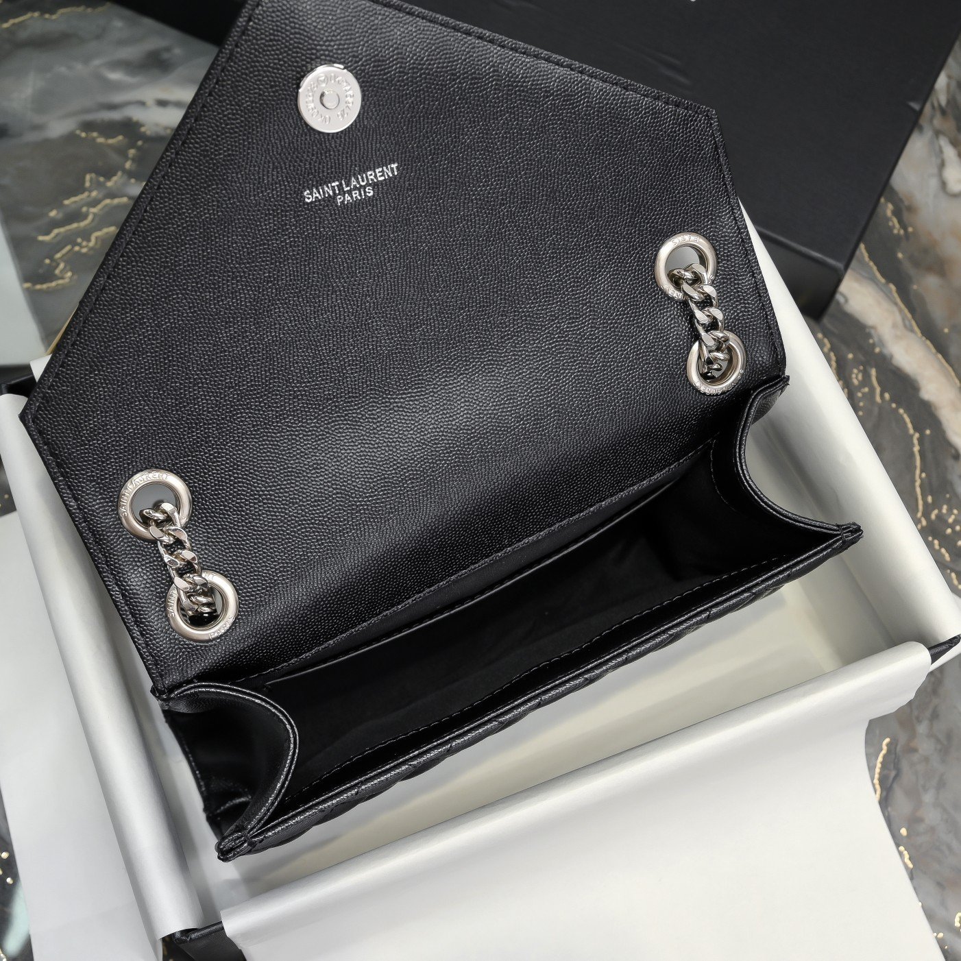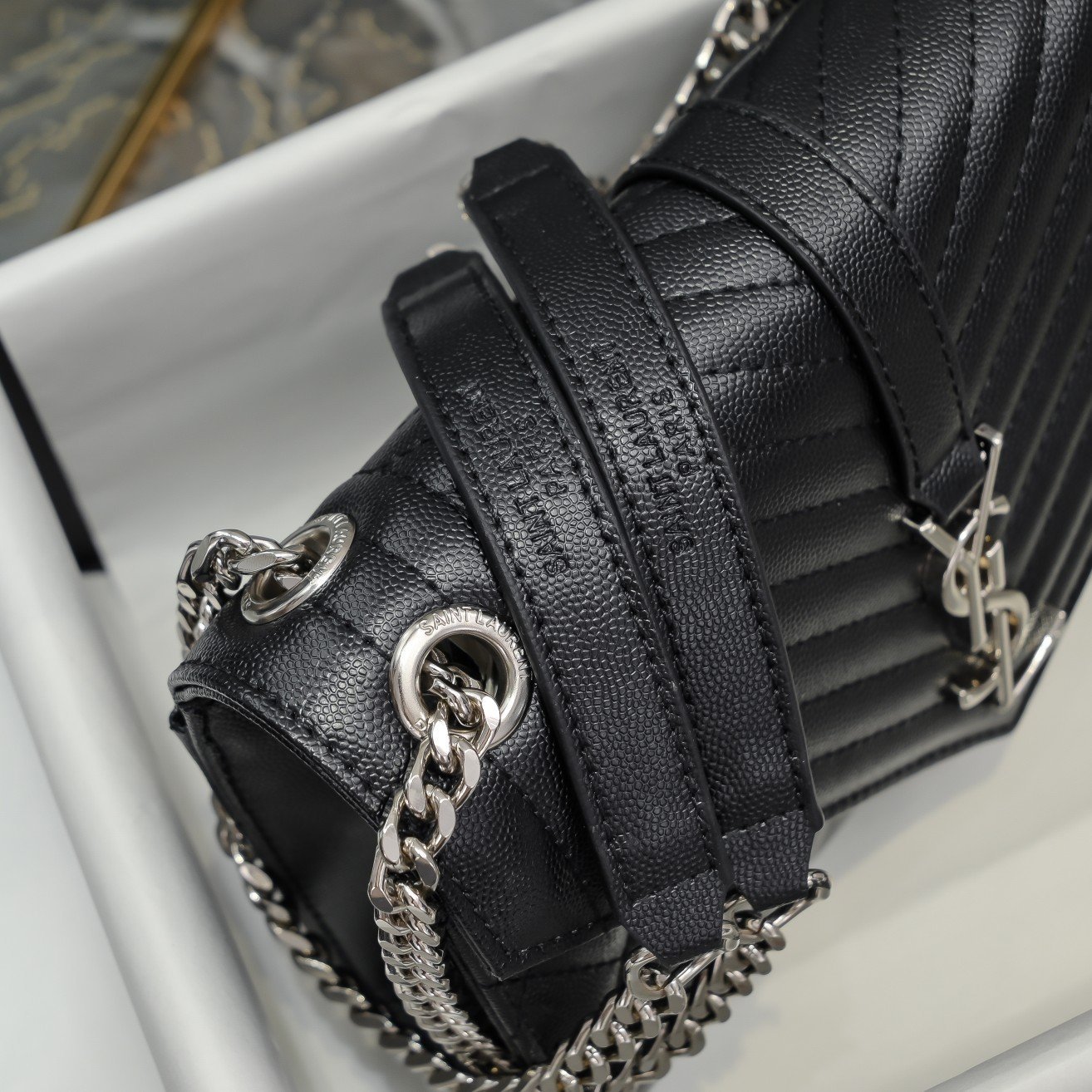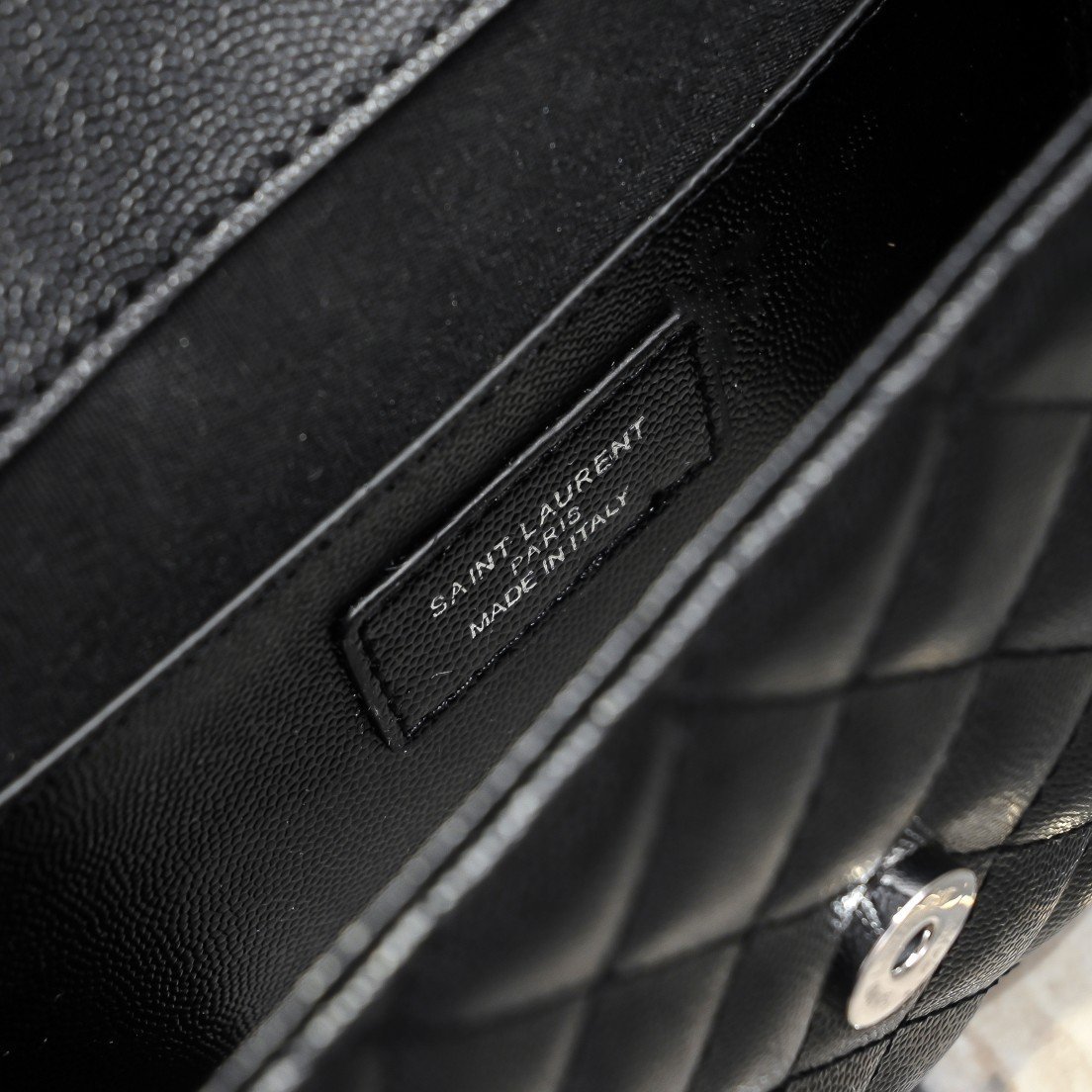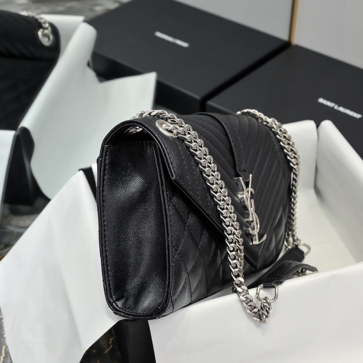 Medium size, Envelope# black silver buckle. Medium-sized grained embossed quilted genuine leather envelope bag. Classic is eternal. The V-pattern combined with rhombus-shaped caviar pattern is extremely beautiful. Italian cowhide leather with a conspicuous Y brand logo is both atmospheric and fashionable. One chain with three ways to carry: single-chain crossbody, double-chain single-shoulder, and single-chain single-shoulder are all perfect. For fairies of different heights, there is always a carrying method suitable for you. Oh no, it’s the feeling of falling in love. Model: 48722. Size: 24×17.5x6cm.