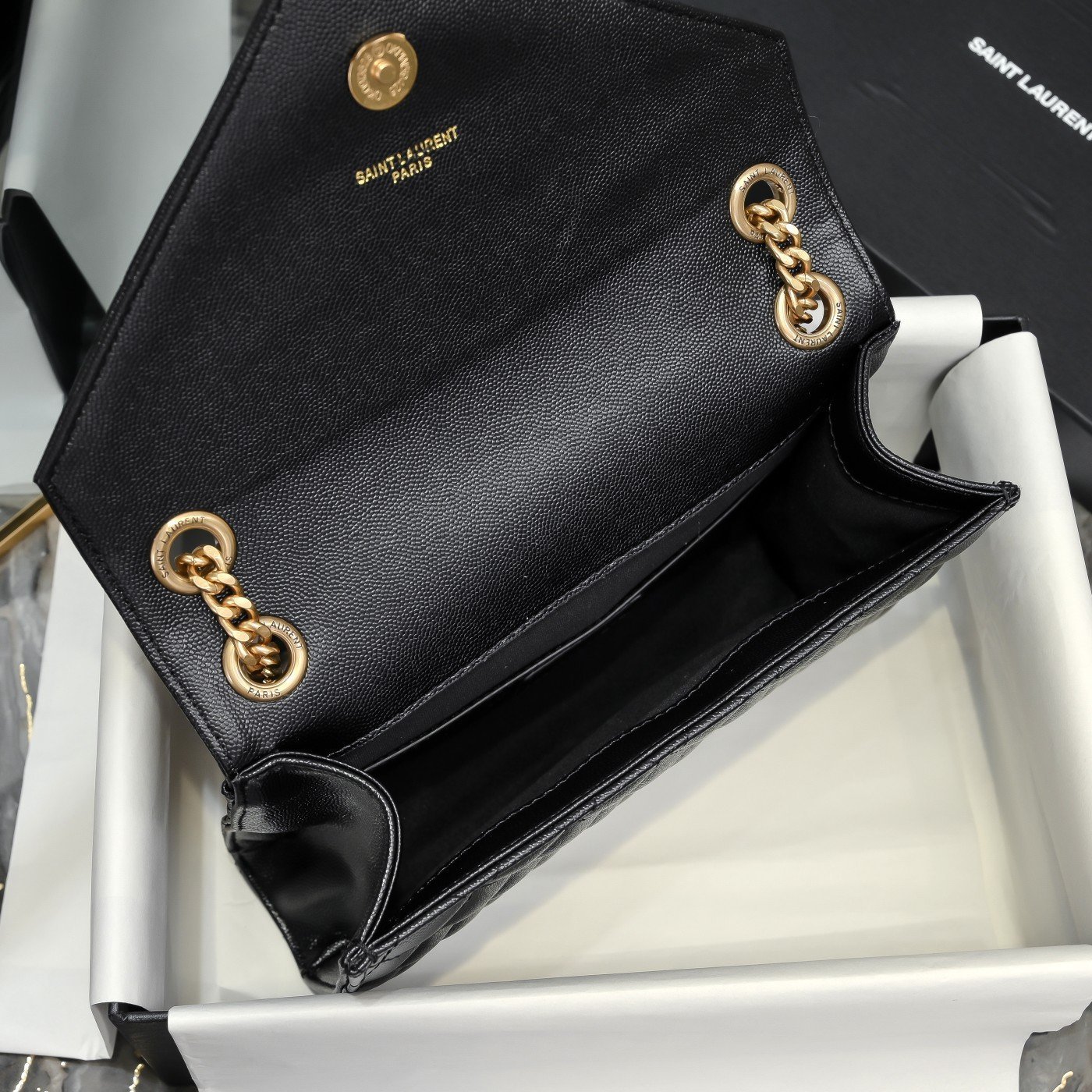Medium size, Envelope# black with gold buckle. Medium-sized grained embossed quilted genuine leather envelope bag. Classic is eternal. The V pattern combined with rhombus pattern and caviar texture is extremely beautiful. Italian cowhide with a conspicuous Y family logo, integrating elegance and fashion. One chain with three ways to carry: single-chain crossbody, double-chain single-shoulder, and single-chain single-shoulder are all perfect. For fairies of different heights, there is always a carrying method suitable for you. Oh no, it’s the feeling of being enchanted! Model: 48722. Size: 24×17.5x6cm.