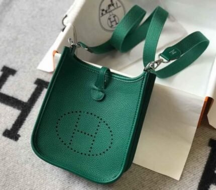 Replica Hermes Evelyne Bag Hermes Mini Crossbody Bag 20412 Silver Buckle Dark Green