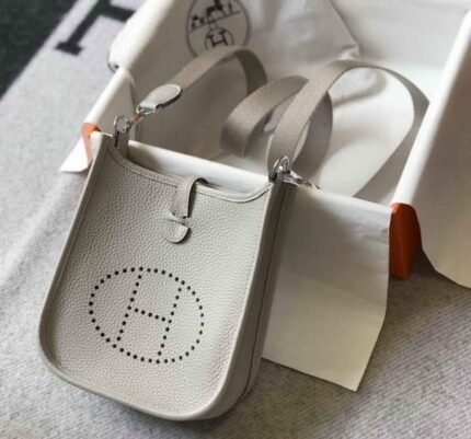 Replica Hermes Evelyne Bag Hermes Mini Crossbody Bag 20402 Silver Buckle Light Gray